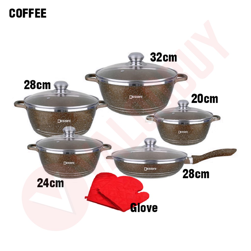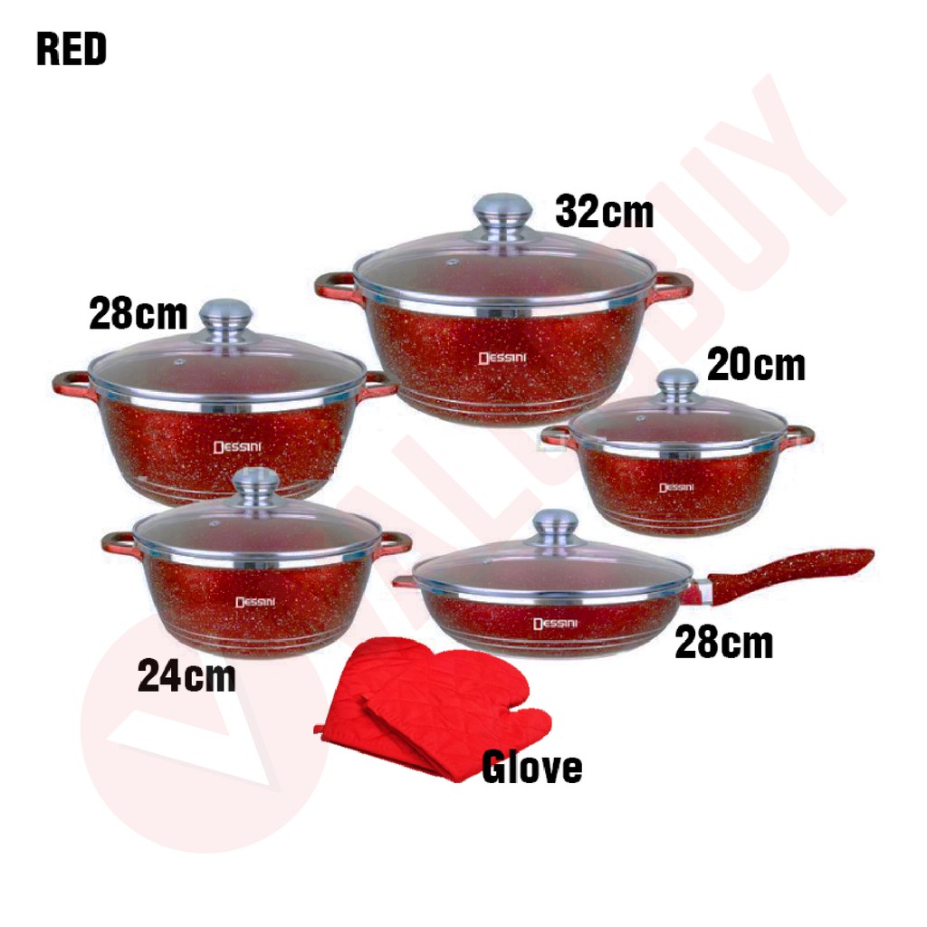 12 PCS DESSINI ITALY Non Stick Cookware Set Cooking Pot Frying Pan ORIGINAL [READY STOCK]