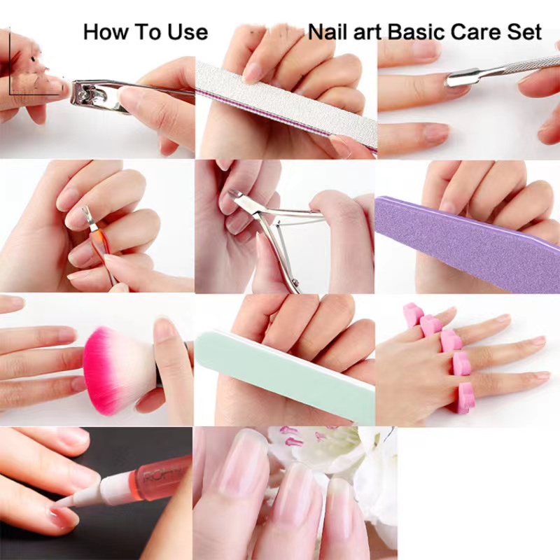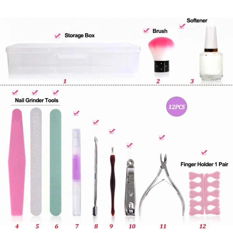 12 PCS Nail Manicure Tool SET Basic Nail Grooming Pedicure Kit Cuticle / Nail Polish Remover Clipper Pusher Clean Brush