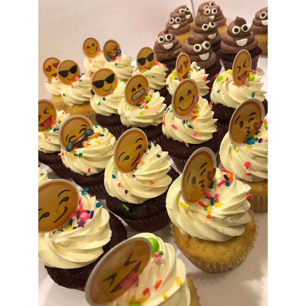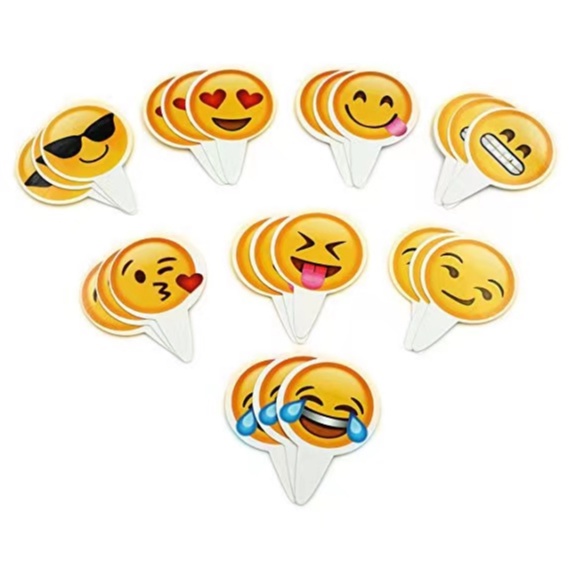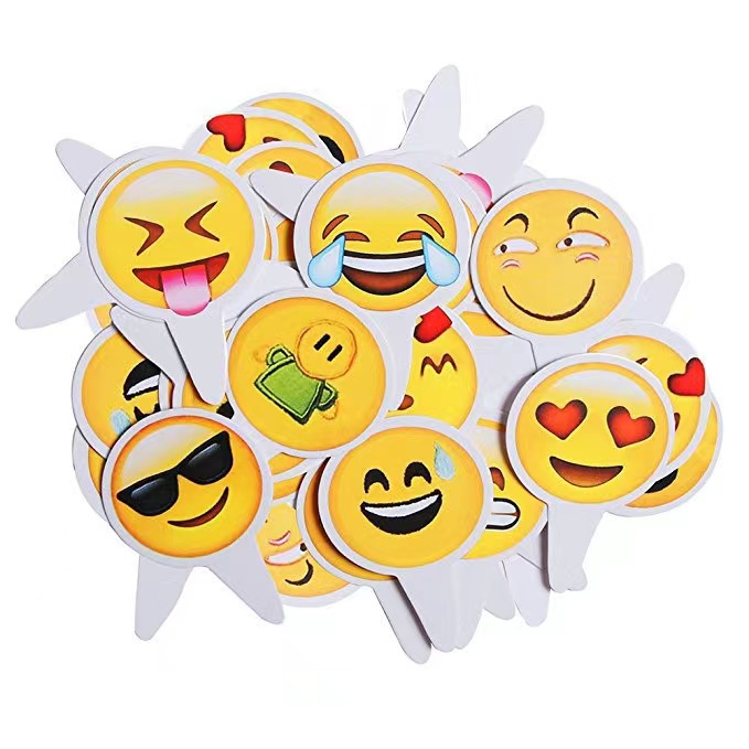 12 Pcs Lovely Funny Emoji Smiley Face Expression Smiling Cake Topper For Happy Birthday Party Wedding Decoration Supplie