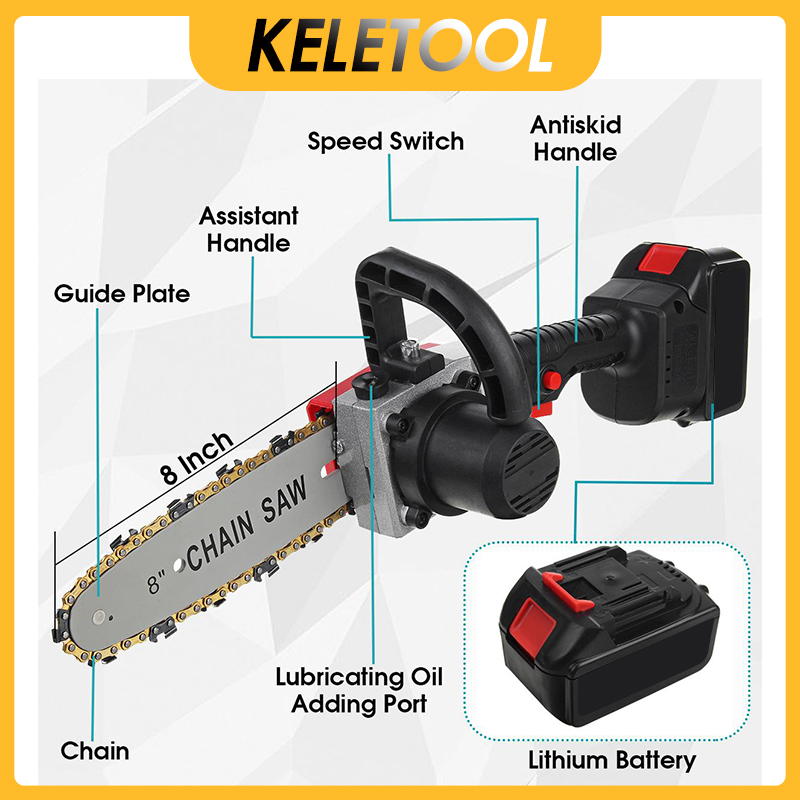 12 inch mesin potong kayu elektrik bateri pokok machine wood chainsaw cordless gergaji kayu tangan pemotong Cordless Mini Electric Chain Saw Handheld Motor Logging Single hand