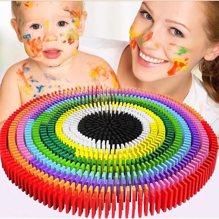 120/240/360/720 Pcs Colorful Wooden Dominos Blocks Set, Kids Educational Play Toy, Domino Racing Game Dominoes Playset