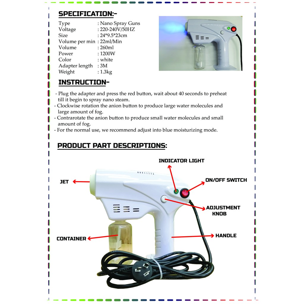 1200W 260ML DISINFECTION NANO MIST ION SPRAY STEAM GUN PORTABLE FOGGING DISINFECTION NANO ATOMIZING SPRAYER