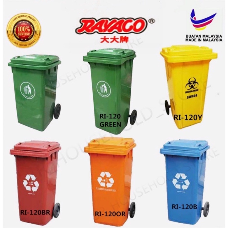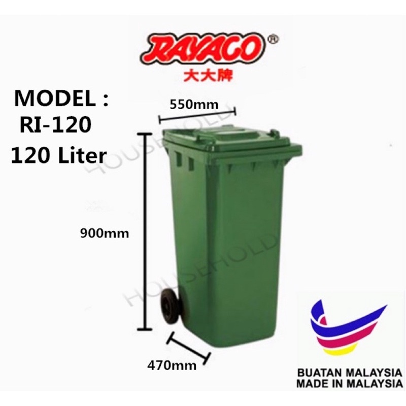 120L/240L Big Garbage Bin With Wheel / Green Mobile Garbage Waste Bin Outdoor / Tong Sampah Hijau Besar Trash Bin