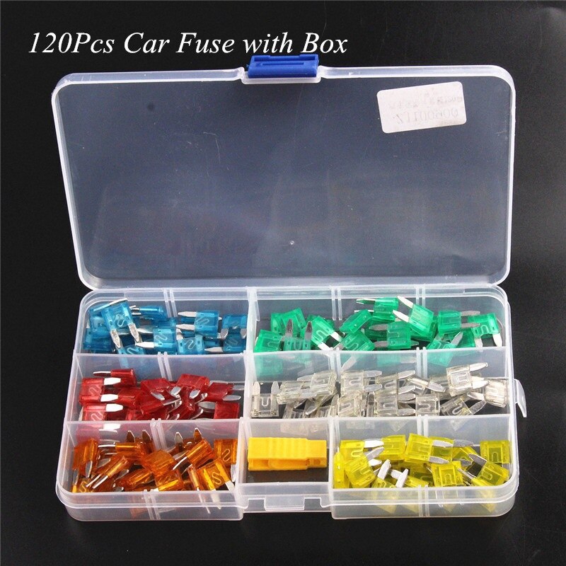 120Pcs Profile Mini Small Size Blade Car Fuse Assortment Set for Auto Car Truck 5/10/15/20/25/30A Fuse with Plastic Box