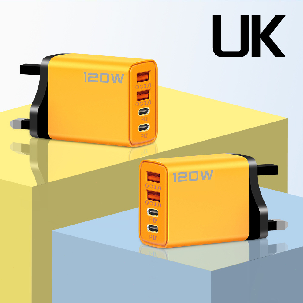 120W Multi-Ports Phone Charging Adapter Dual TYPE-C+Dual USB Fast Charging Type C Intelligent Fast Charging Head