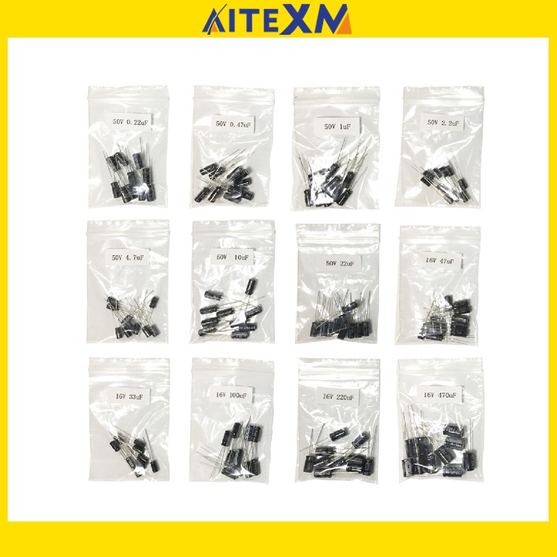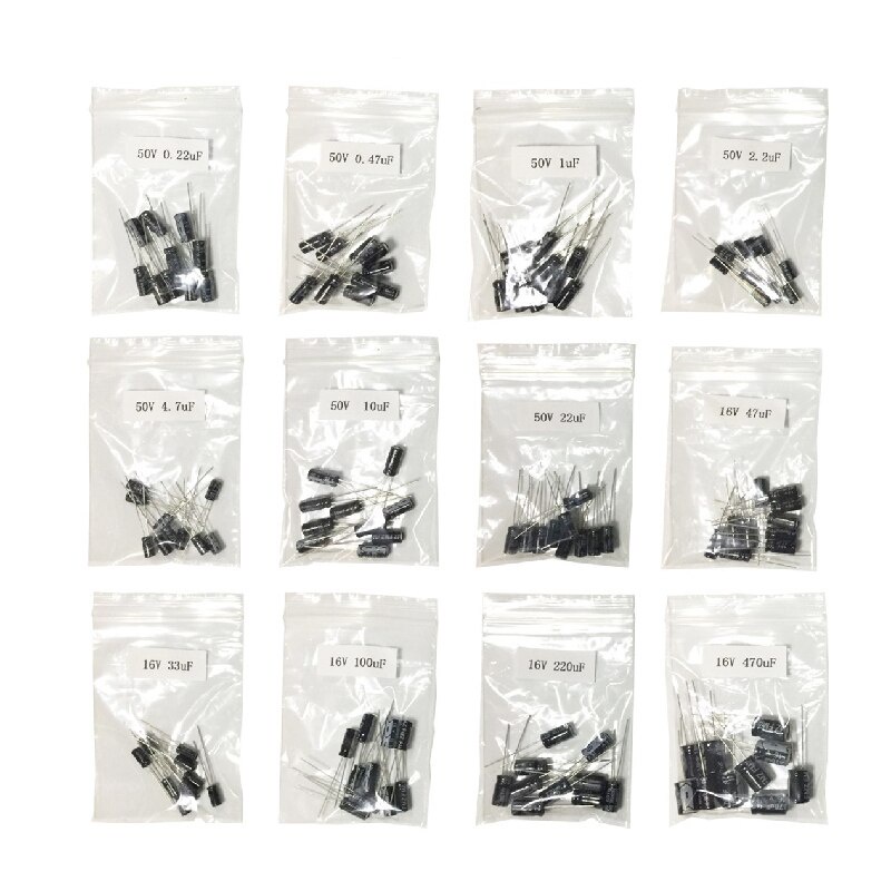 120pcs 1set of 120pcs 12 values 0.22UF-470UF Aluminum electrolytic capacitor assortment kit set pack 1UF 4.7UF 10UF 50V