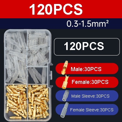 120pcs/set 3.5mm Brass Bullet Connector Terminal Male & Female with Cover Electrical Wire Connector
