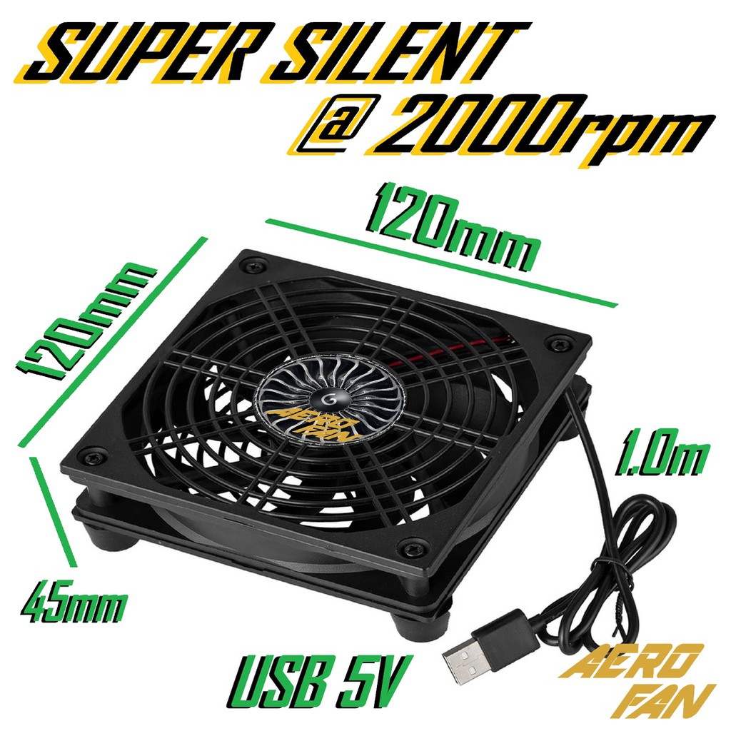 120x120mm AeroFan Router Fan 2000RPM Japan Powerful WiFi Router Cooling Fan Modem TVBox Cooler Fan 12cm USB Kipas Router