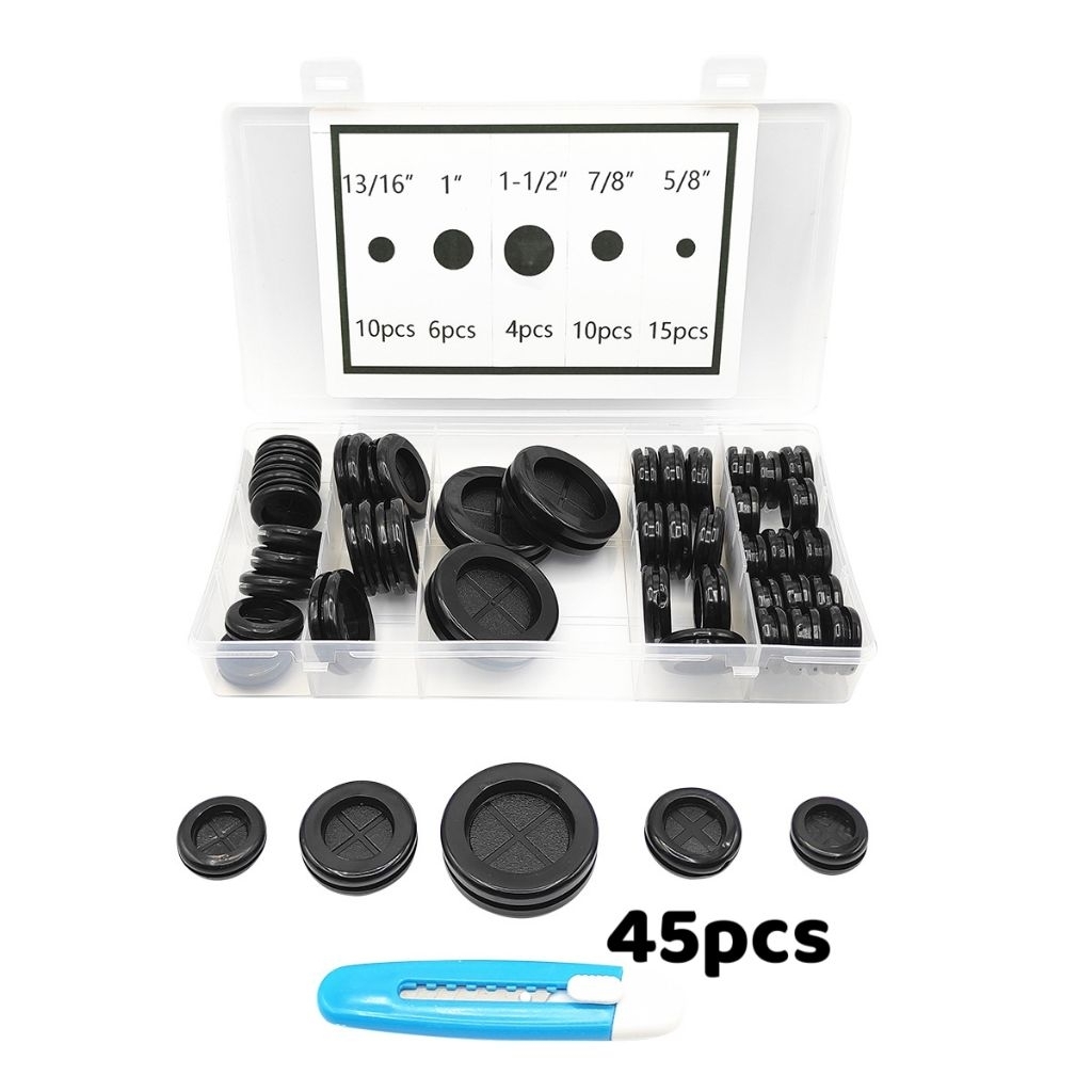 SinarSupermart 125pcs 45pcs Rubber Grommet Wire Hole Plug
