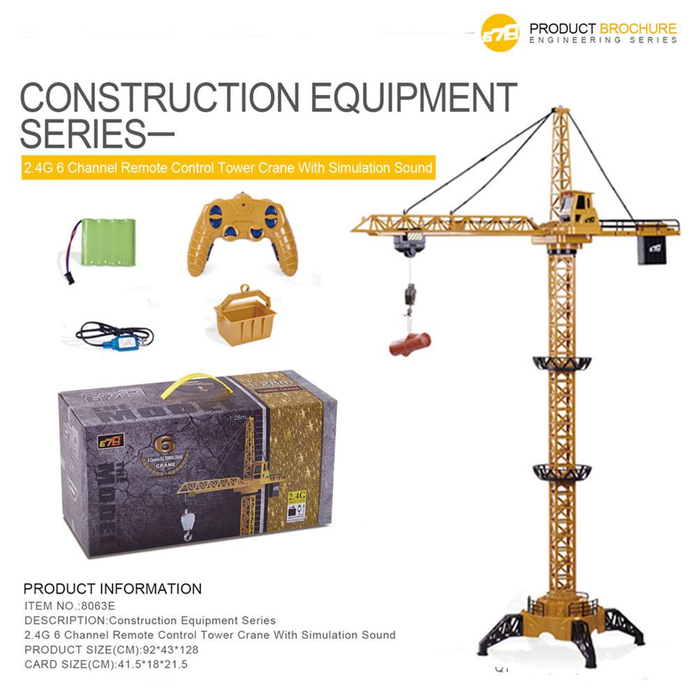 128CM RC Tower Crane Toys 2.4G Remote Control 6CH Large Crane Simulation Construction Trucks Site Toys For Boys