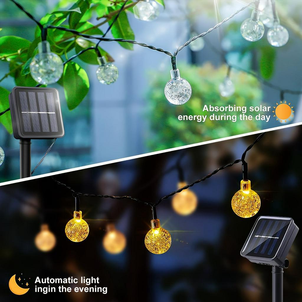 12M Solar Crystal Ball String Lights - 100LED Waterproof Outdoor Decor with 8 Modes for Garden Patio Christmas (Weatherproof Party Lighting)
