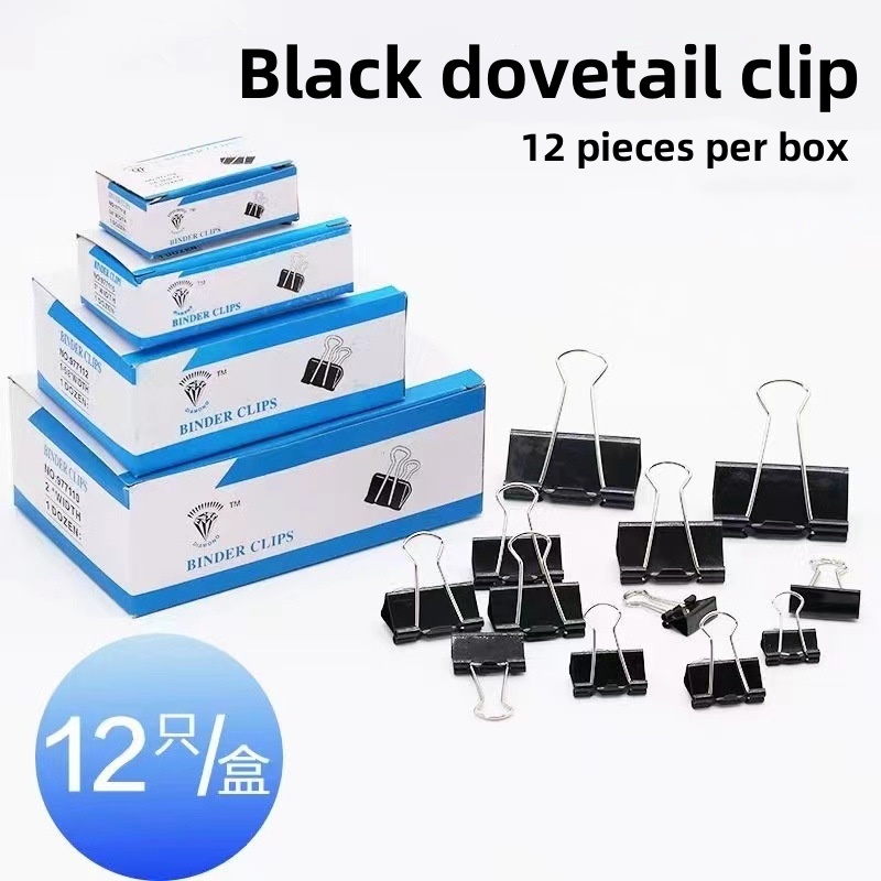 12PCS Per Box Black Dovetail Clip Binder Paper Clip Reverse Tail Clip Ticket Clip Office Supplies