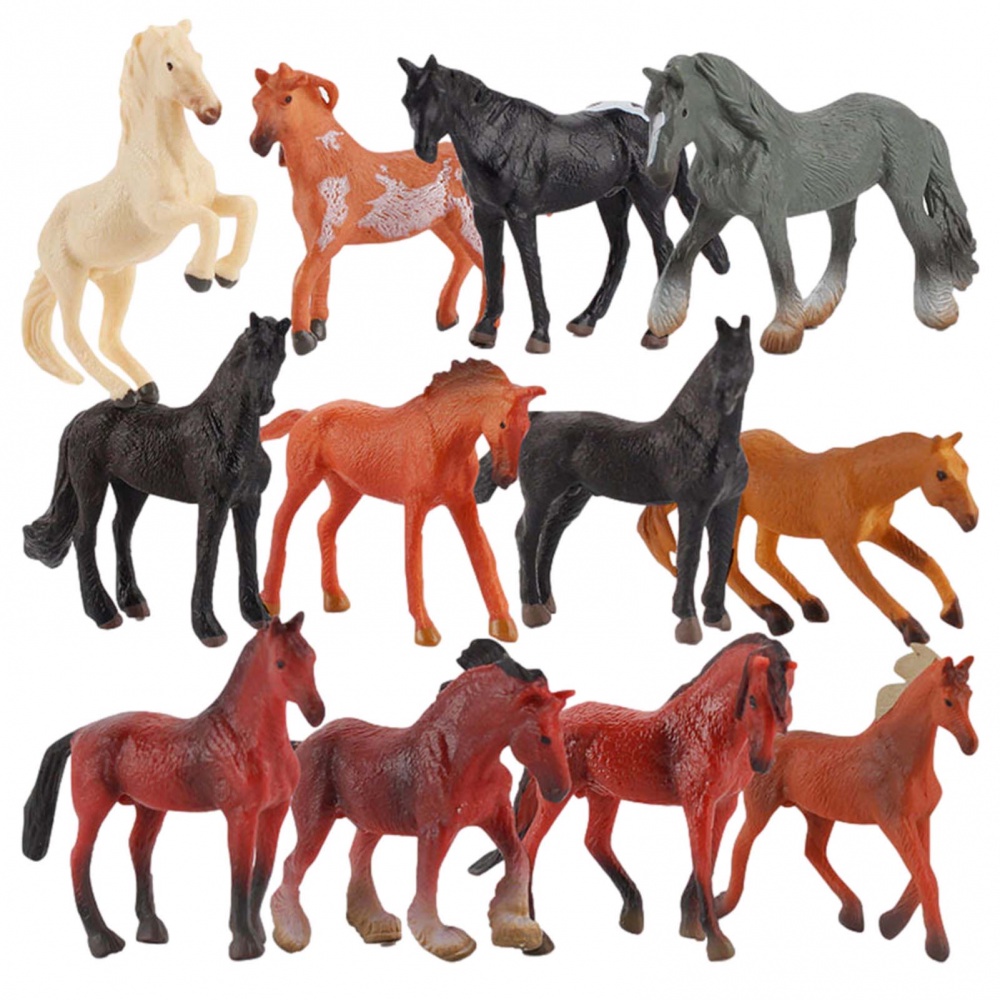 12PCS mini Arabian Horse Hanoverian Morgan Stallion Toy Figures Plastic Horse Figurines Horse Animal Toys for Girls & Boys Cake Topper Party Decoration