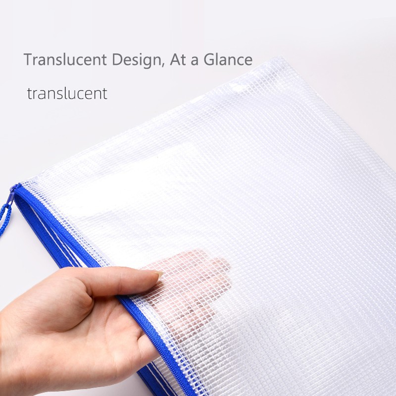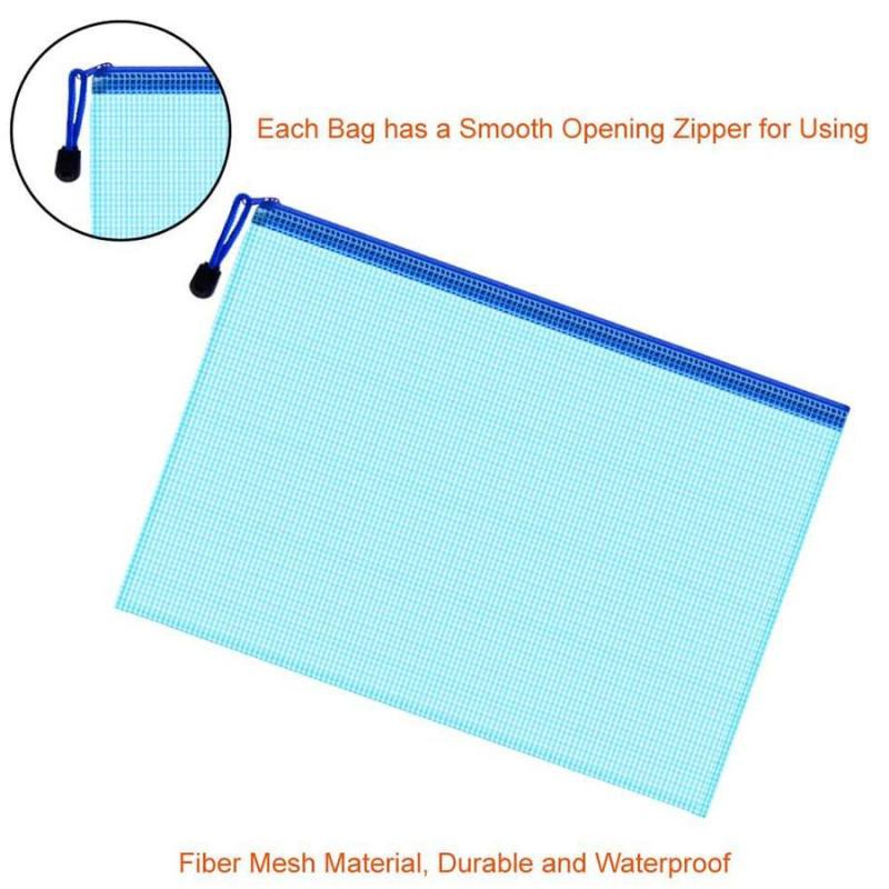 EverToner 12Pcs A4 Size Gridding Waterproof Zip Bag Document Bag Mesh File Folder School Office Supplies Document File Zipper Bag