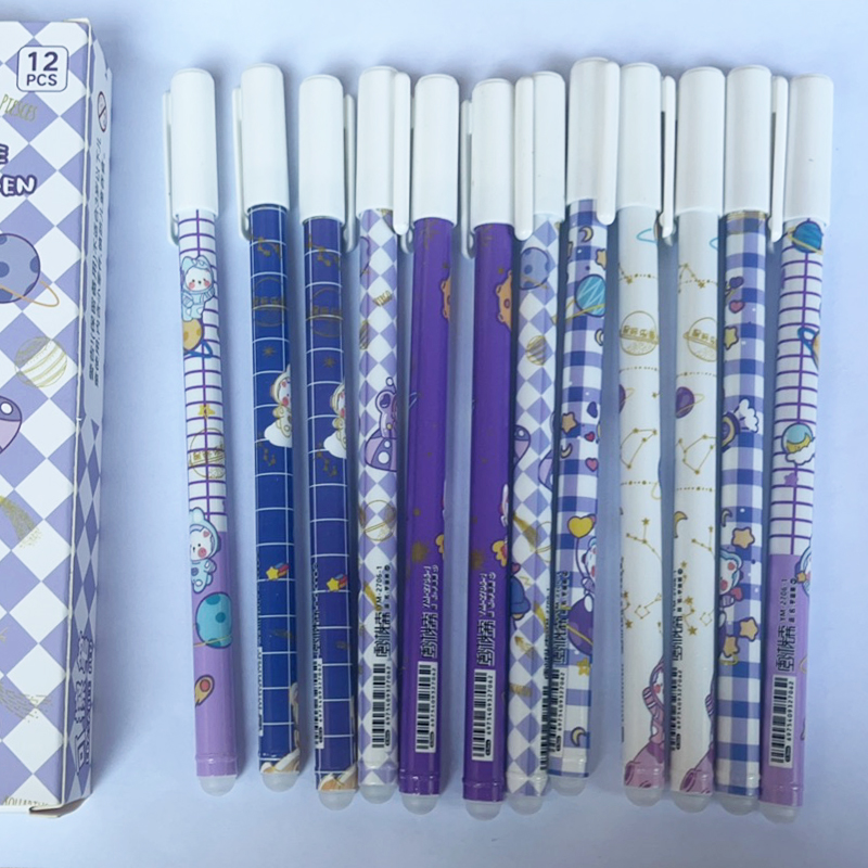 12Pcs Creative Cartoon 0.5mm Erasable Gel Pen Cute Blue Ink Signature Pen Self-writing Tool with Eraser Office Stationery Supplies