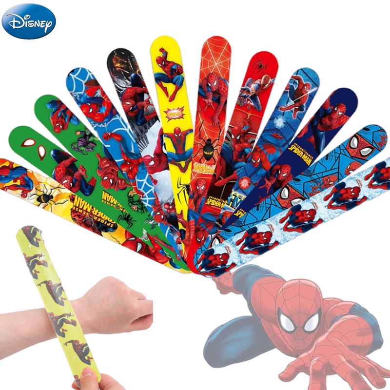 12Pcs Spiderman Child Wristband Marvel Anime FigureWristband Child Slap Band Puzzle Kids Toys Boys Girls Christmars Gifts