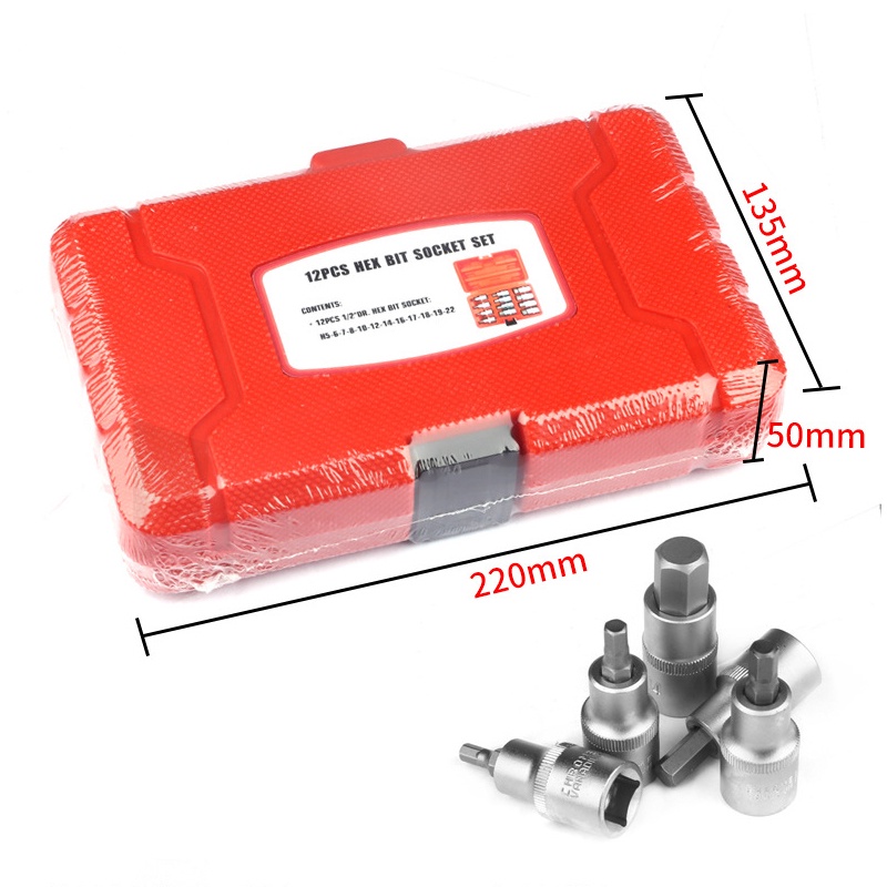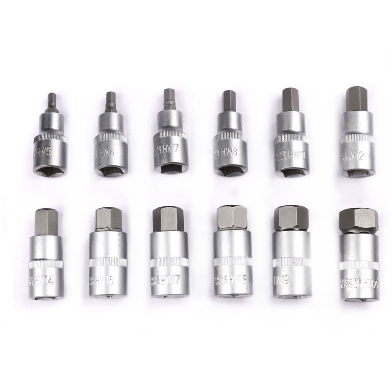 12Pcs/set 1/2 Inch Drive Impact Hex Bit Socket Wrench Set H5-H22 Hexagon Wrench Sockets Kit H5/H6/H7/H8/H10/H12/H14/H16/