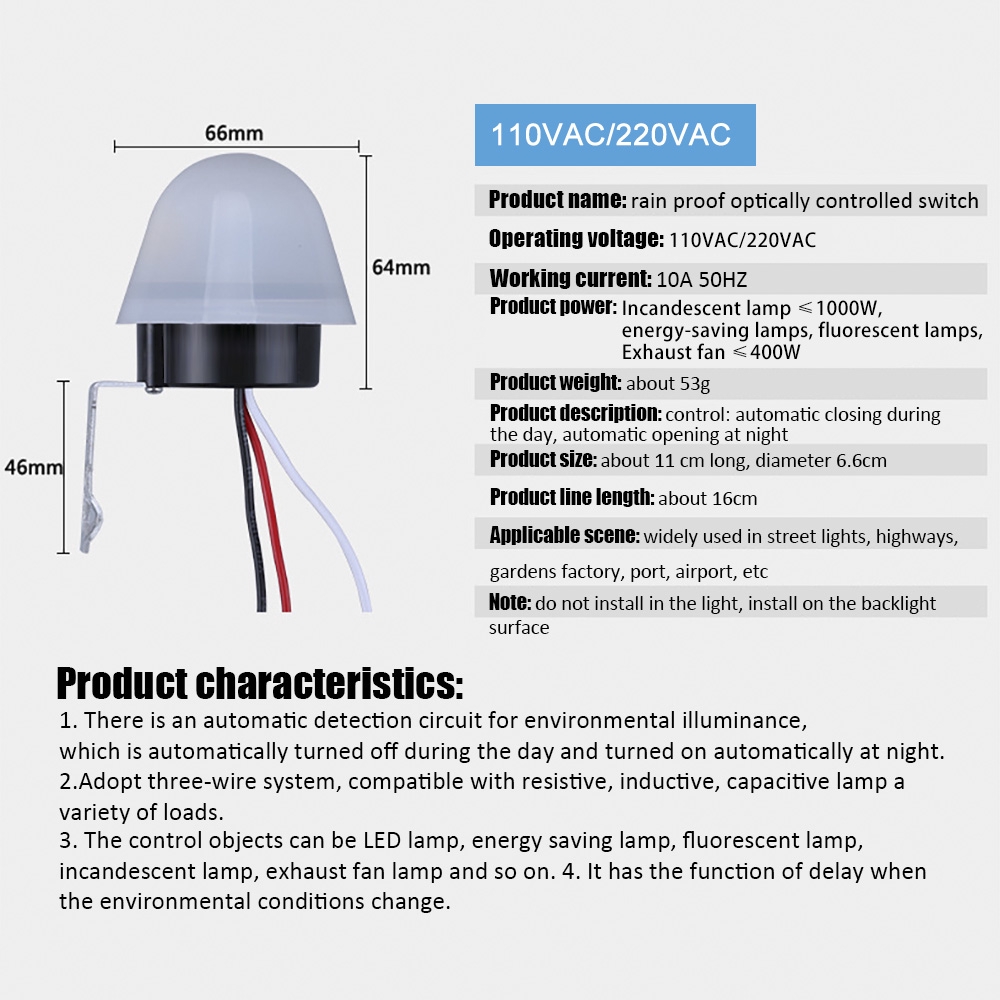 12V 110V 220V Automatic Auto On Off Photocell Street Light Switch DC AC 220V 10A Sensor Switch Rainproof and waterproof Street Light Switch