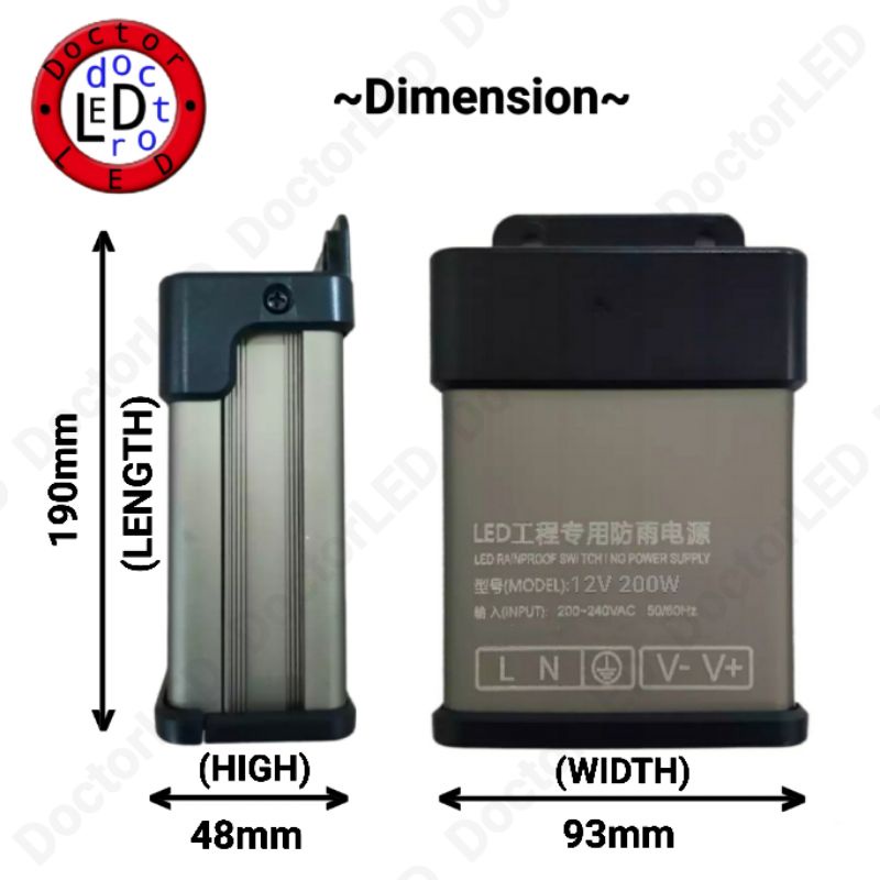 12V 16.6A Rainproof Power Supply AC to DC Transformer Adapter LED Pengubah Bekalan Kuasa Outdoor Indoor