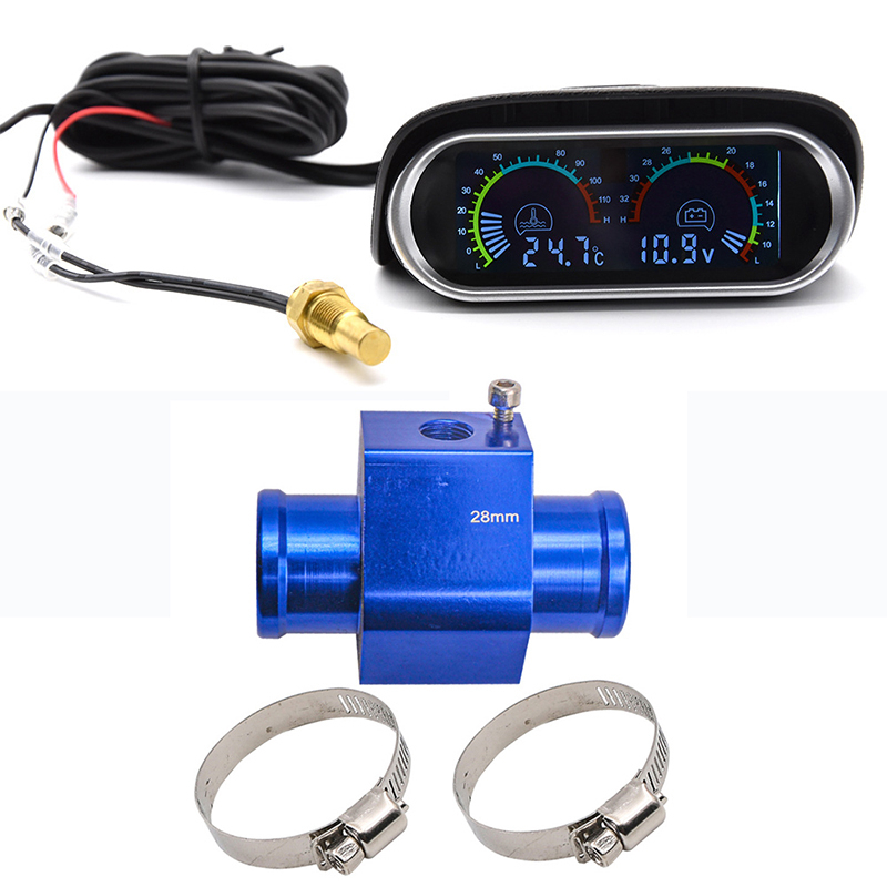 12V 24V Auto Car Truck Motorcycle Water Temp Gauge Temperature Sensor Radiator Adapter 1/8NPT Digital Led Voltmeter Temp Joint