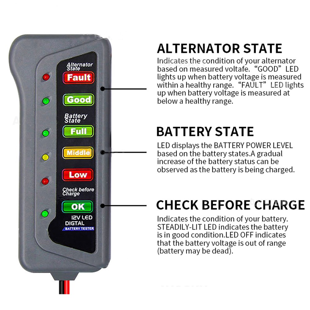12V Car Battery Tester Alternator Digital Tester 6 LED Display Battery Mate Diagnostic Tool DIY Bateri Kereta BM310