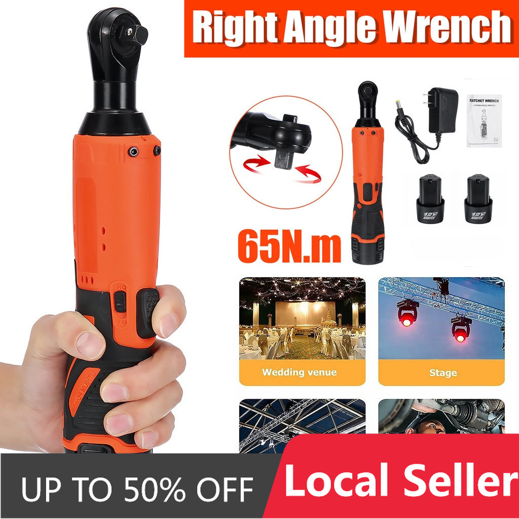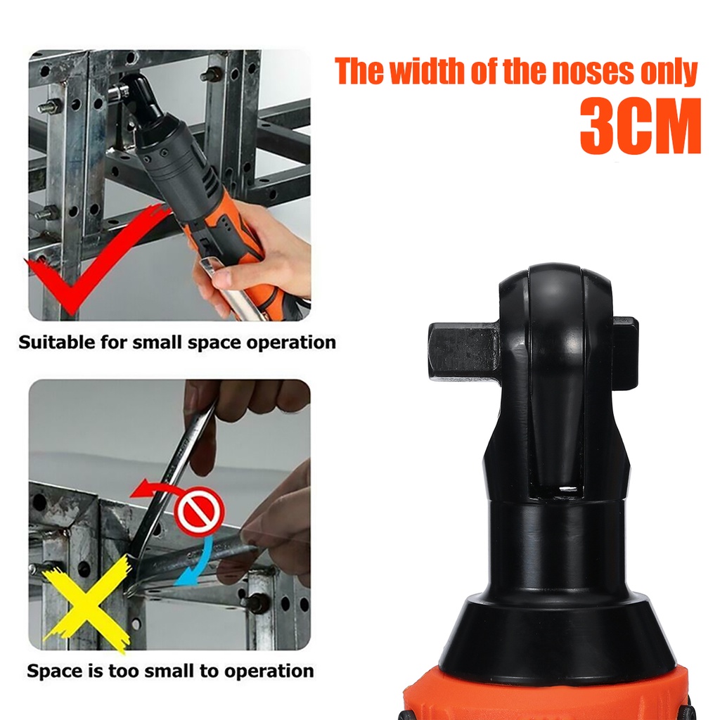 12V Cordless Ratchet Right Angle Wrench 3/8INCHES 65Nm Angle Wrench Tool Impact Power Tool with 2 Battery