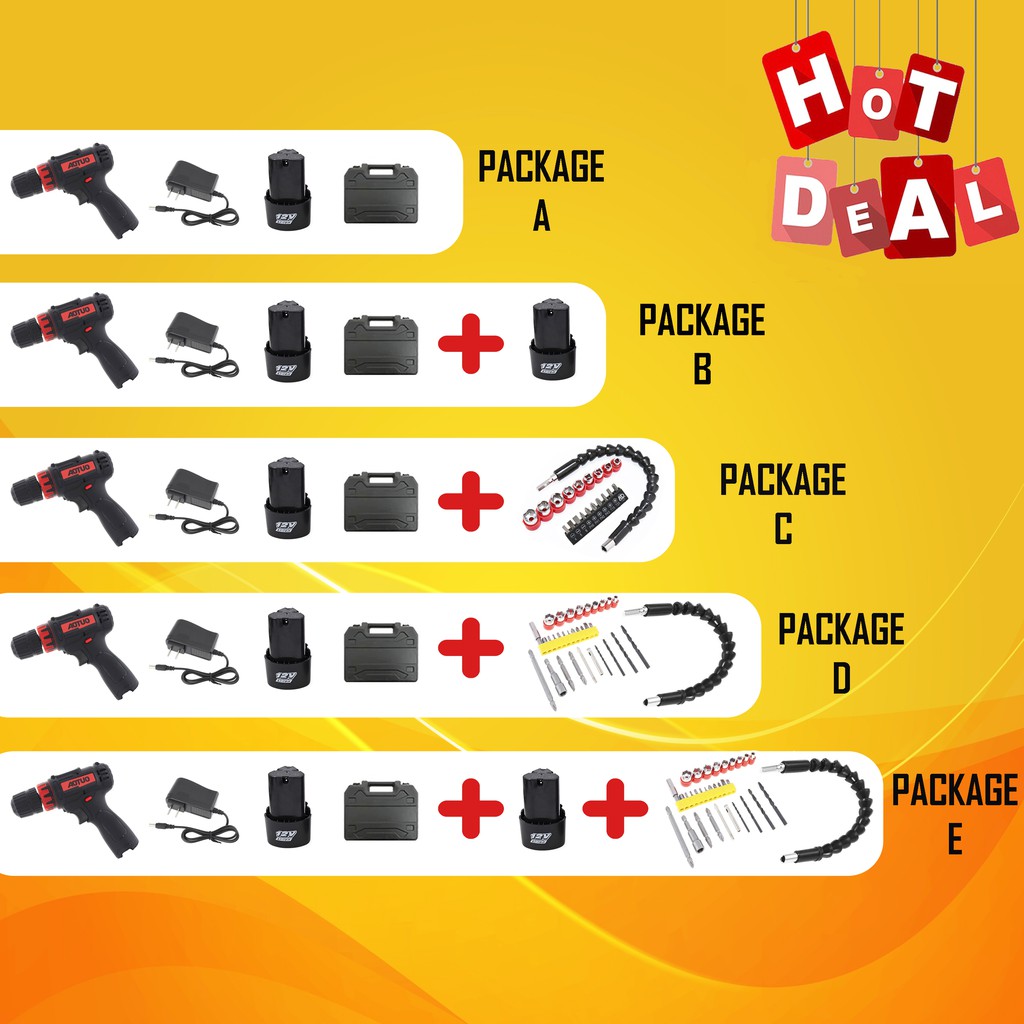 12V Double Speed Cordless Drill 2 Speed Battery Drill Two Speed Li-ion Battery Multi-function High Speed Hand Drill Set