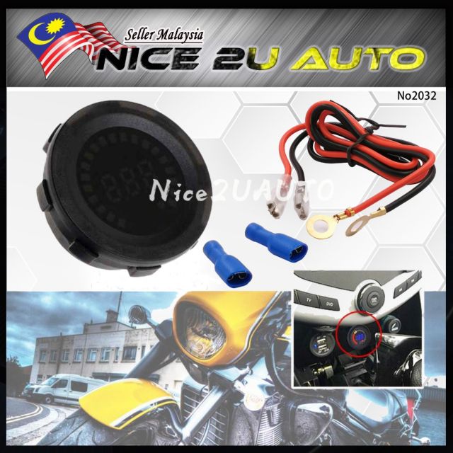 12V Motorcycle Car LED Digital Display Voltage Voltmeter Moto Accessories Motosikal Kereta