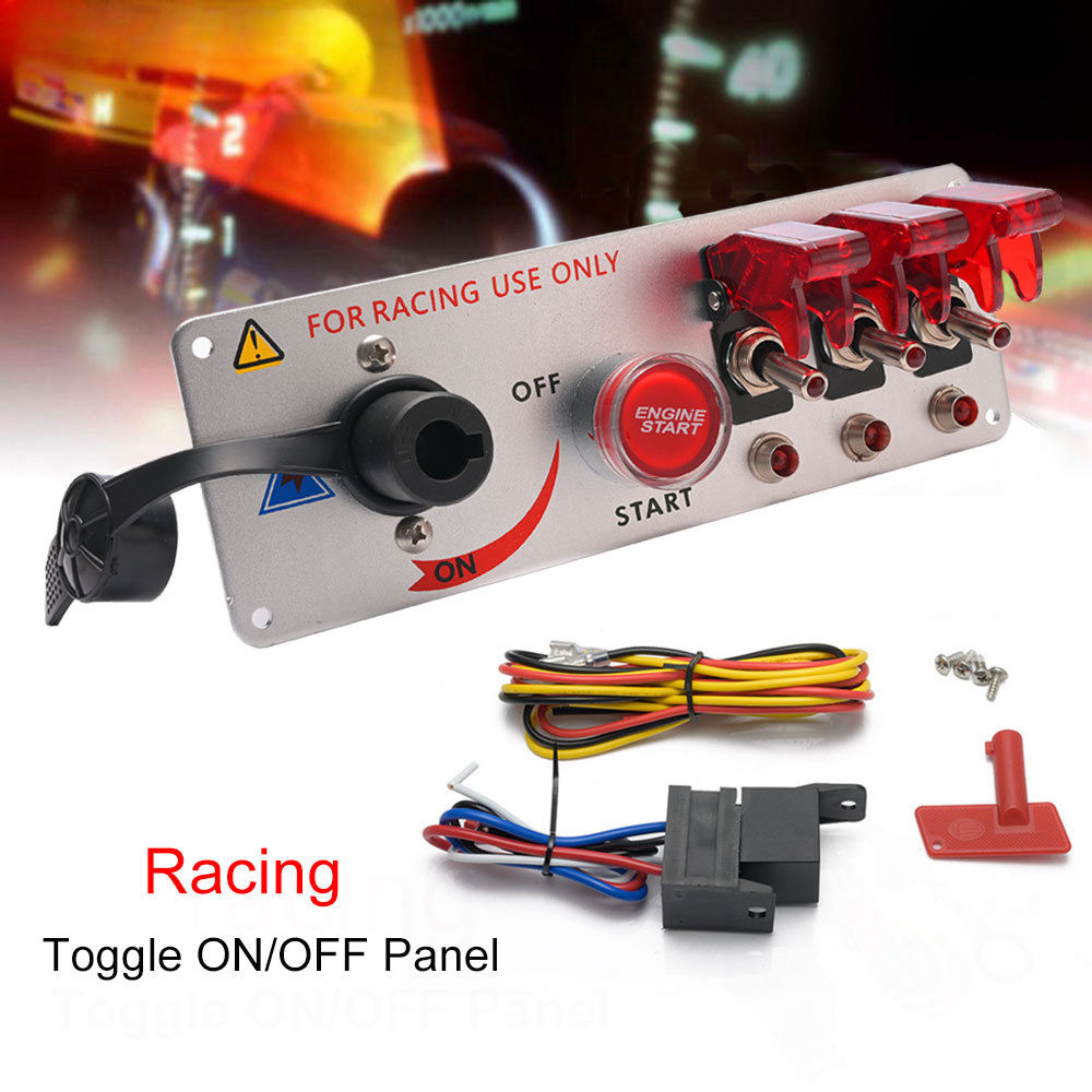 12V Racing Car Toggle Ignition Switch Panel LED Push Button Starter Engine Start