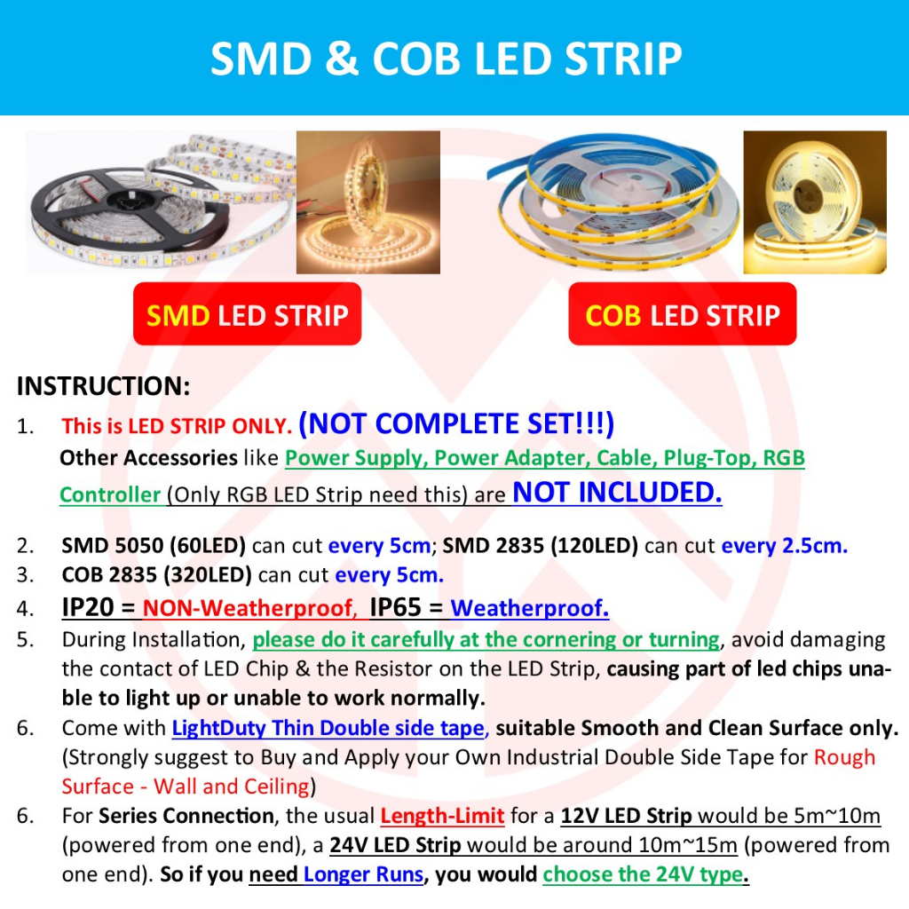 12V SMD 2835 120LED / 12V COB 2835 320LED / 24V COB 320LED 5M SUPER BRIGHT LED STRIP LIGHT