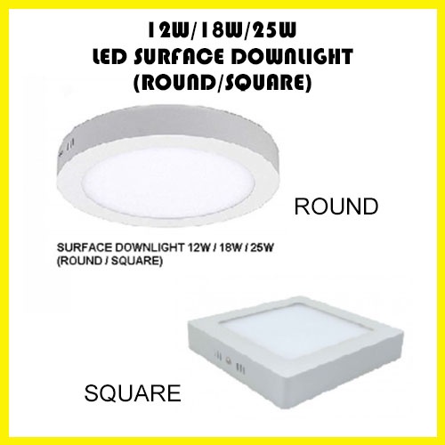 12W / 18W / 25W LED Surface Downlight (Round / Square) Lampu Siling (Bulat / Empat Segi)