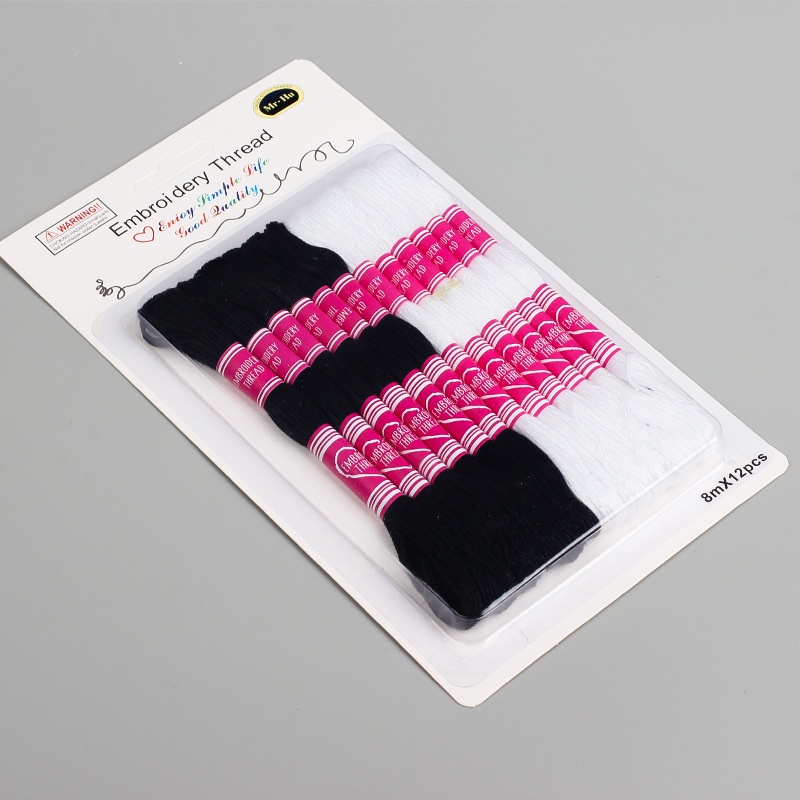 12pcs 8m Embroidery Thread Black and White/red/yellow/purple/green/blue Thread-Card Absorbing Gradient Cross Stitch High Quality DIY Two-color
