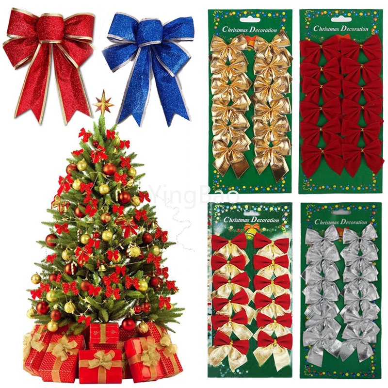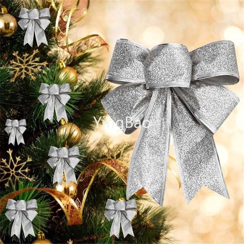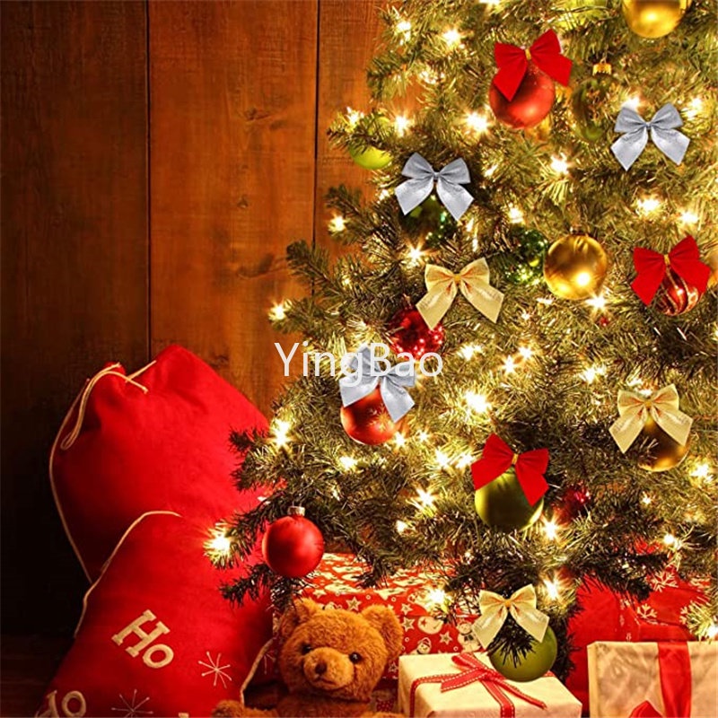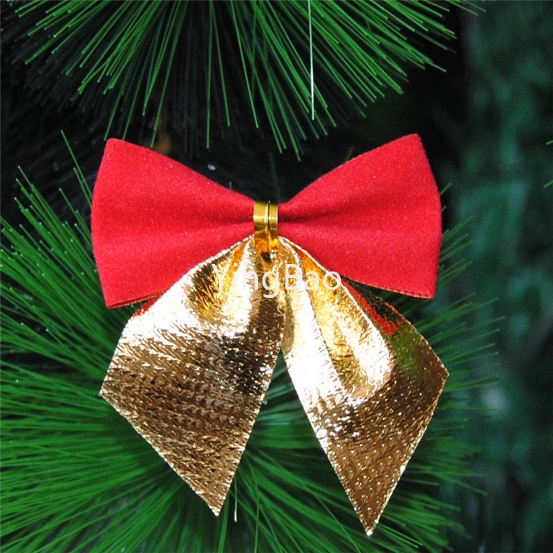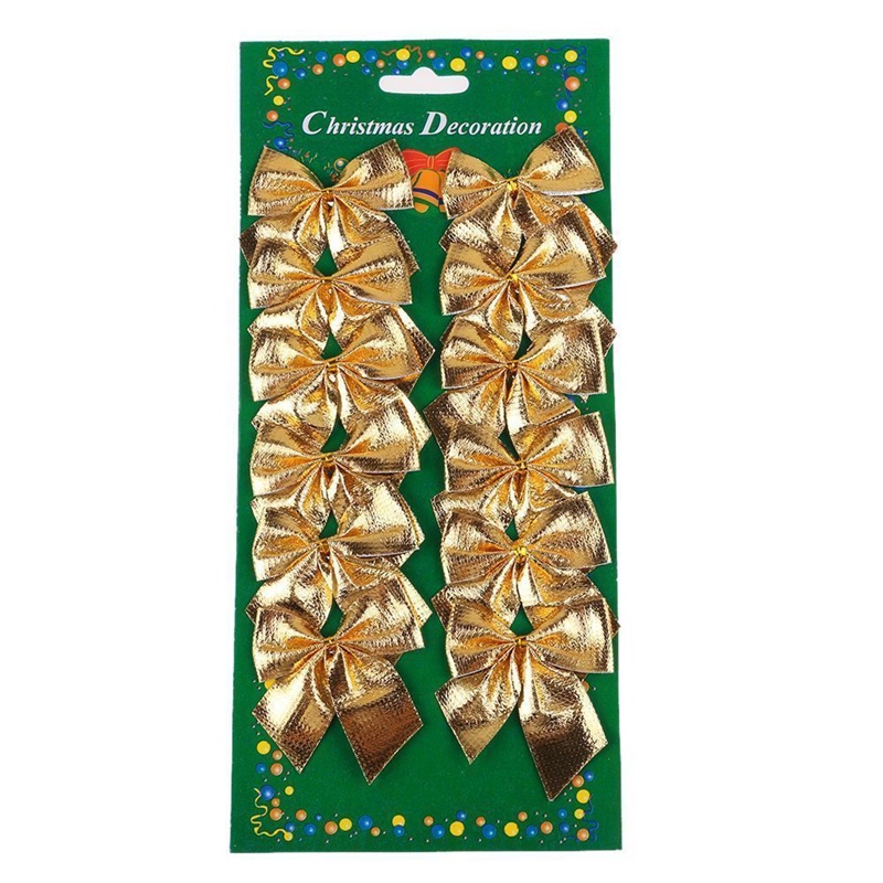 12pcs/set Christmas Bow Decoration Christmas Tree Ornaments Gold Silver Red Bowknot Xmas Tree Ornaments Xmas Party Home Decor