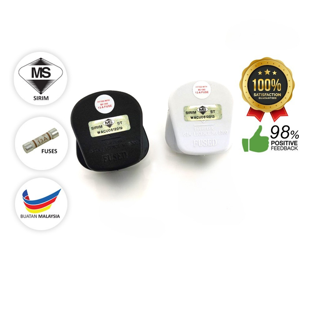 13 Amp 3 Pin Safety Plug Top Socket (Original With Sirim Approved) White/Black
