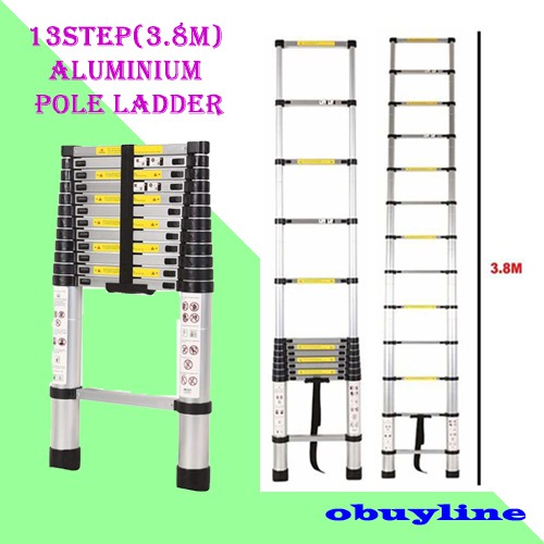 13 Steps(3.8M) Extendable Foldable Aluminium Telescopic Pole Ladder / Tangga