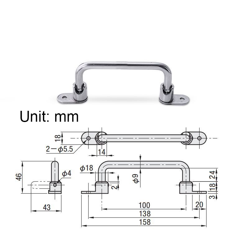 138mm 158mm 180mm 218mm 304 Stainless steel heavy duty folding handle External installed industrial equipment handle box spring handle