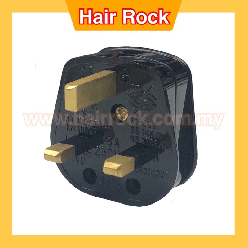 13A (3A Fused) 3pin Malaysia Black Plug Top