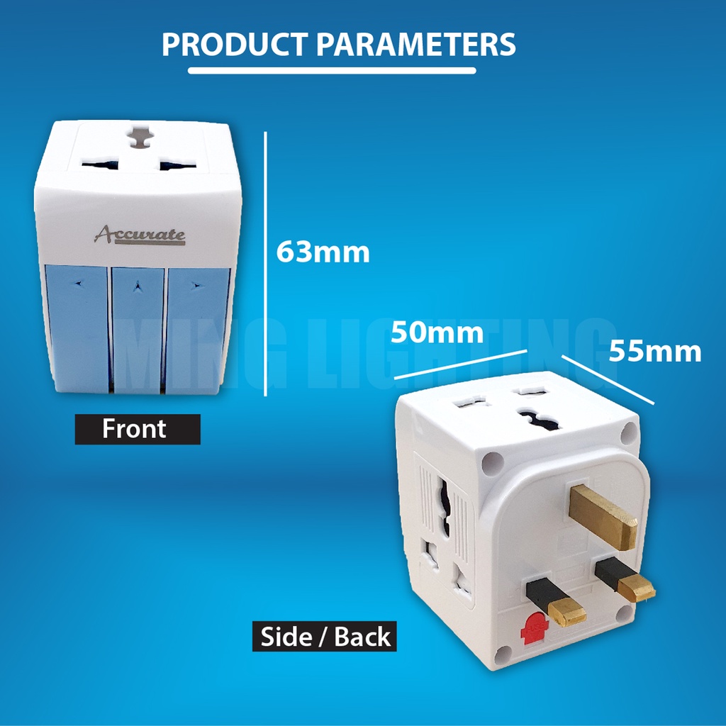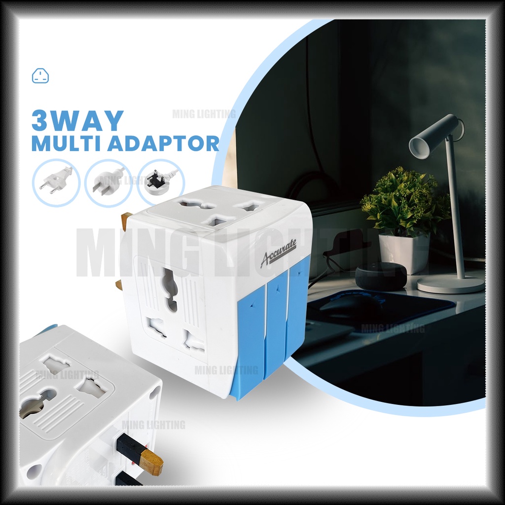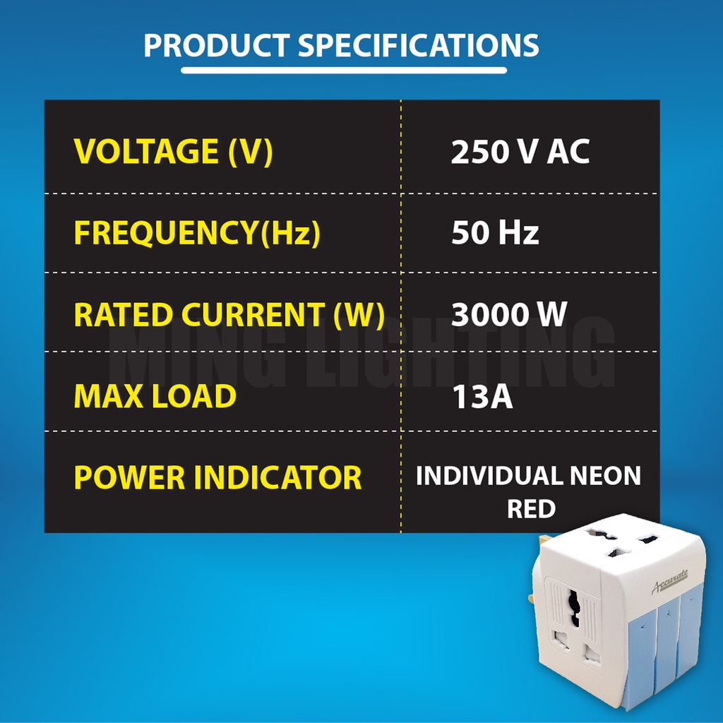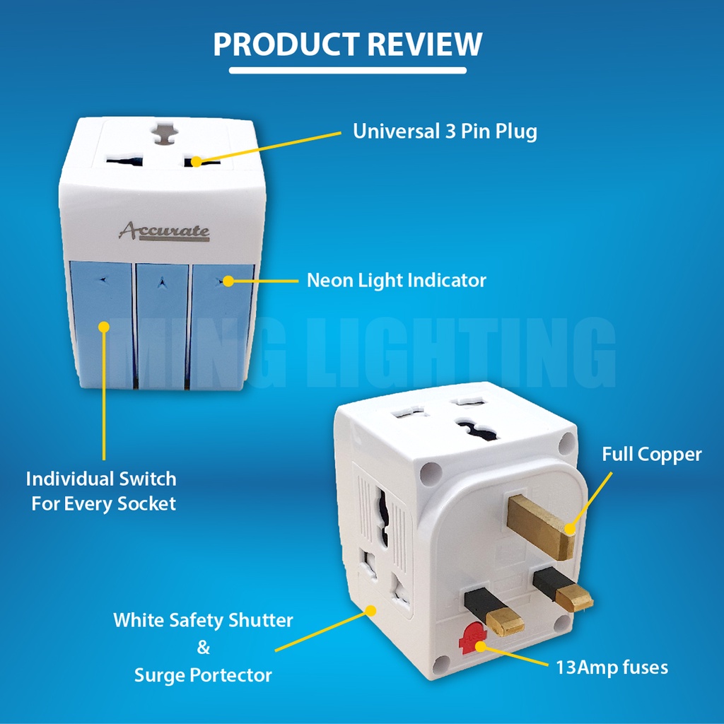 13A Universal Adapter 3 Way Multi Adaptor UK Plug Socket Extension Neon Light w Fuse On Off Switch Charger Home Office