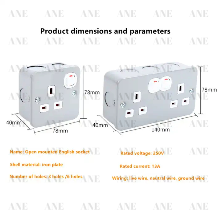 13AMP 3 Pin 2 Gang Metal Clad Switch Socket Outlet