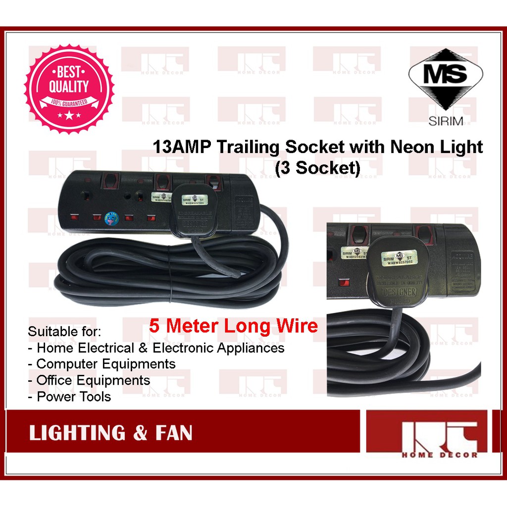 13AMP EXTENSION WIRE TRAILING SOCKET / UNIVERSAL TRAILING SOCKET / SIRIM APPROVED / BUATAN MALAYSIA / LWD / DESIGNER