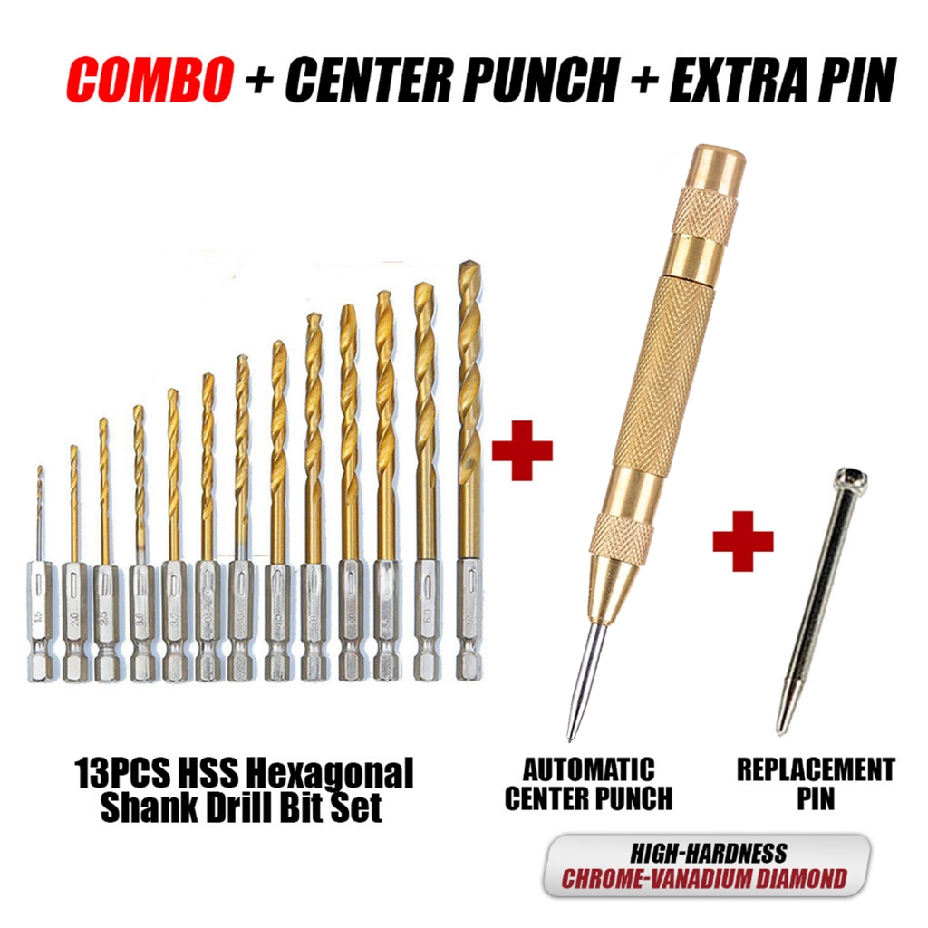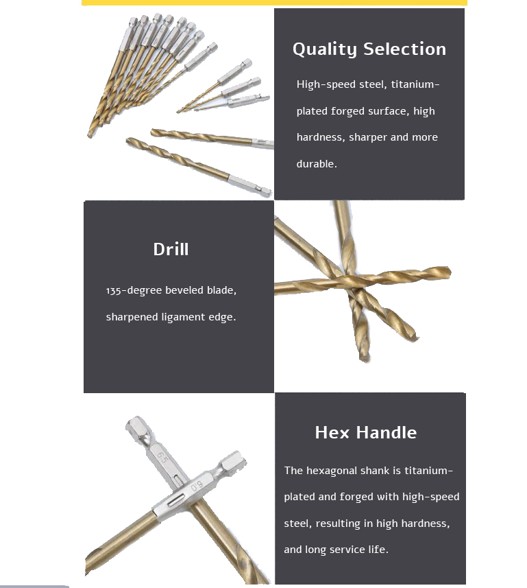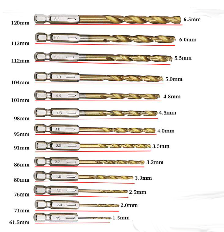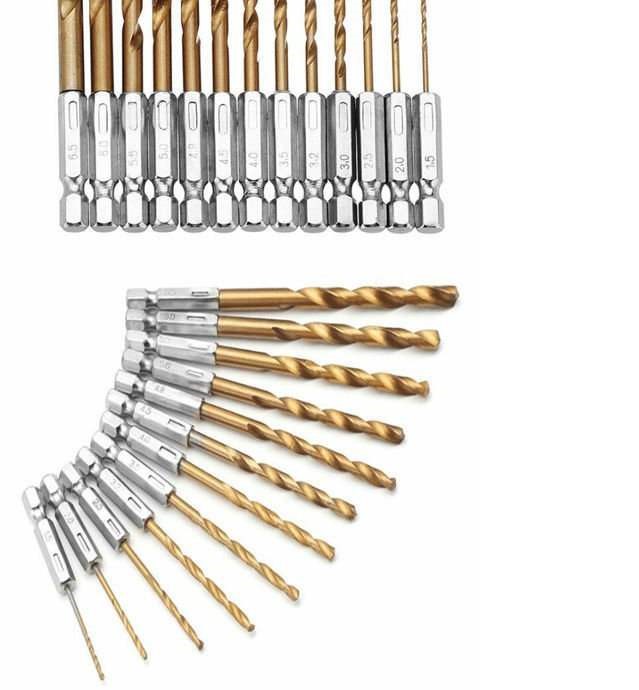 13PCS High-Speed Steel HSS Hexagonal Shank Drill Bit Set 2MM - 6.5MM Twist Power Tools 1/4 Hex Shank