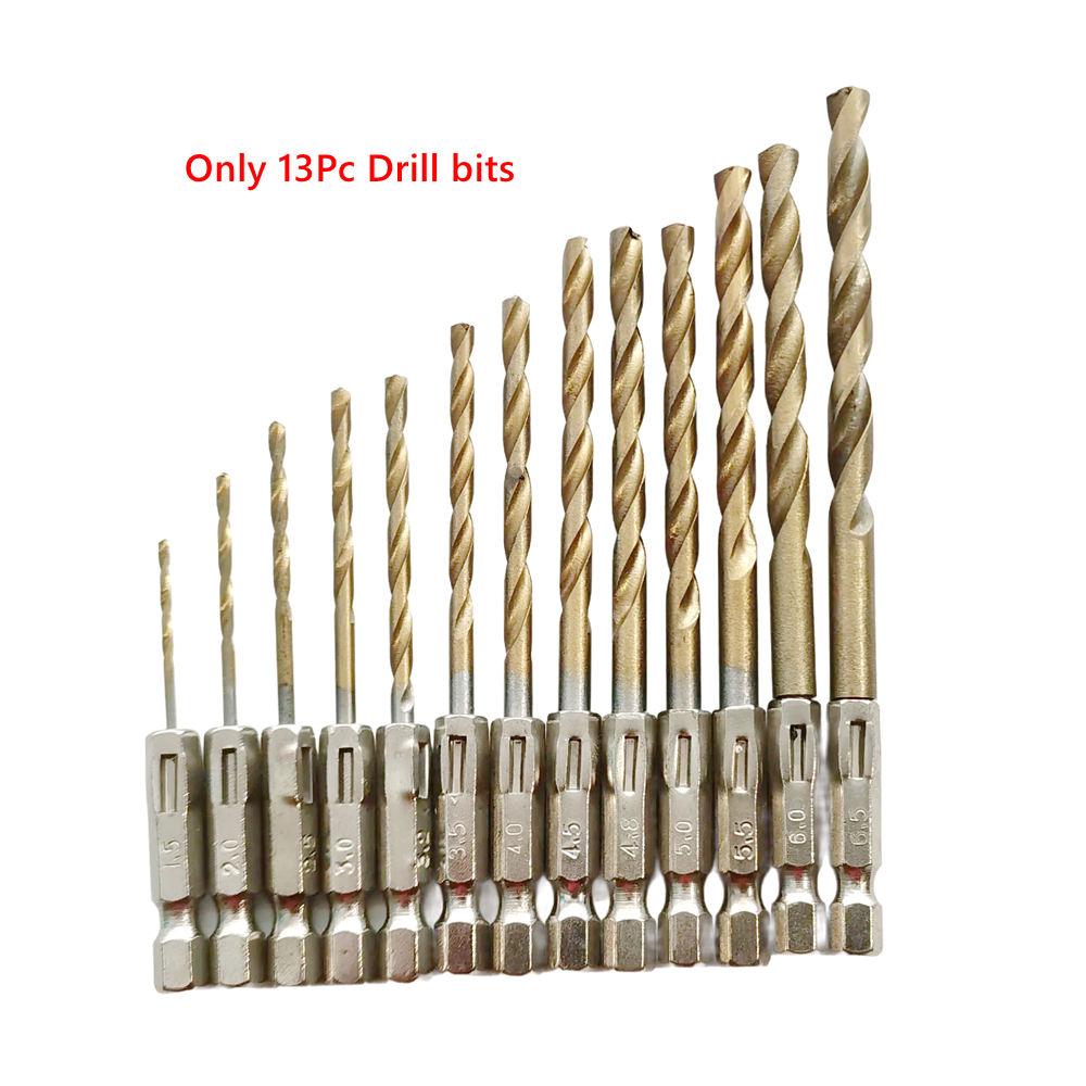 13Pcs Twist Drill Bit Set Titanium Hex Shank HSS + Quick Change Adatper Wood Plastic Metal Aluminum Alloy Impact Driver Power Tool
