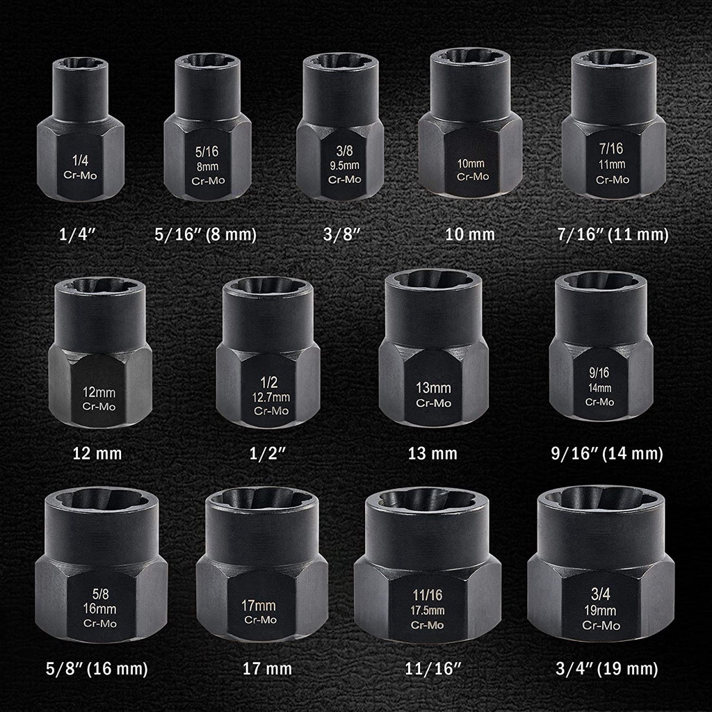 13pcs 3/8" Broken / Damaged Bolt Nut Screw Remover Extractor Removal Set Threading Tools Kit