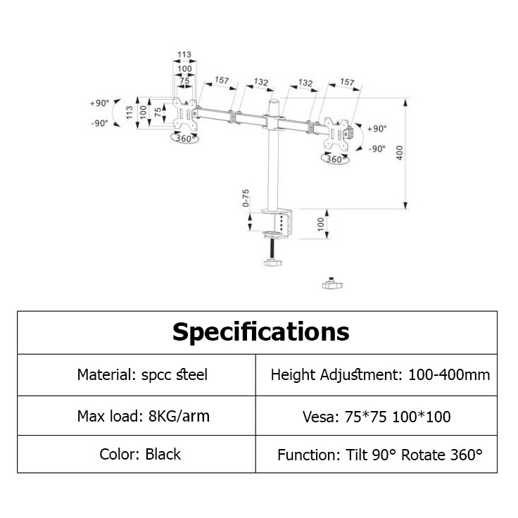 14-27" inches Double Arm Desk Table Computer Dual Monitor LCD TV Clamp Bracket Mount (CLAMP TYPE)