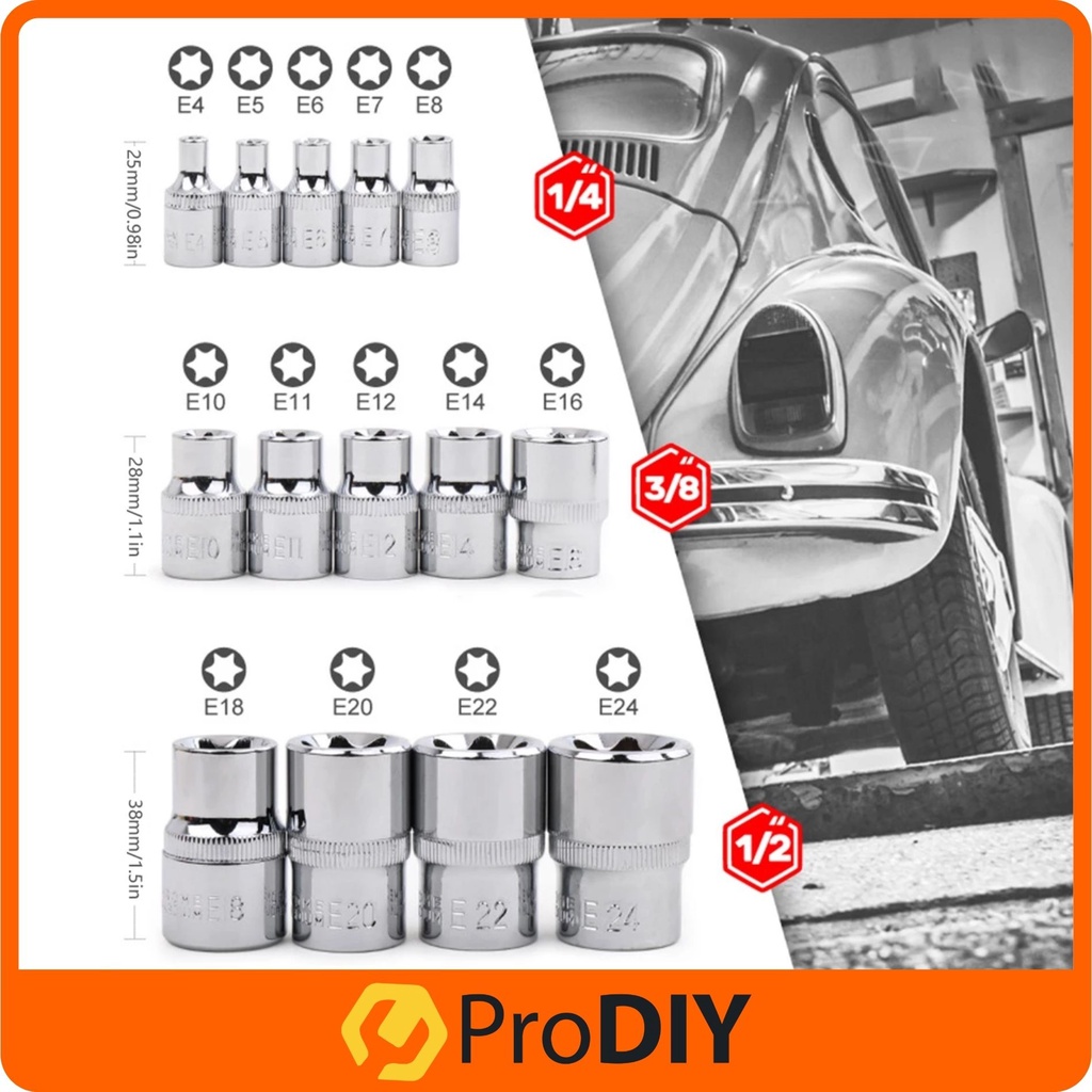 14 PCS Torx E Socket Bit Set Torx Socket Set Rachet Set Steel Repair Kit Automotive Tools Diy