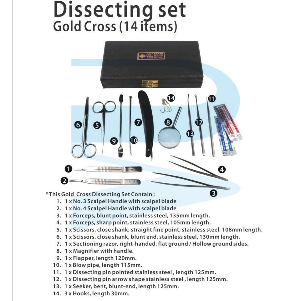14 Pcs GOLD CROSS Dissecting Set, Anatomy Biology Lab Dissection Kit Tools