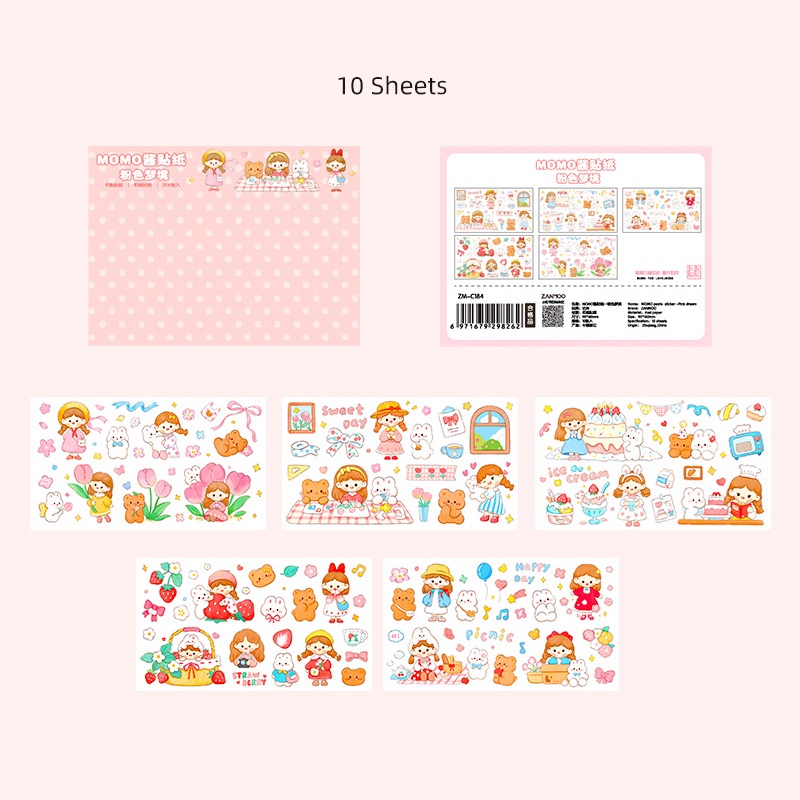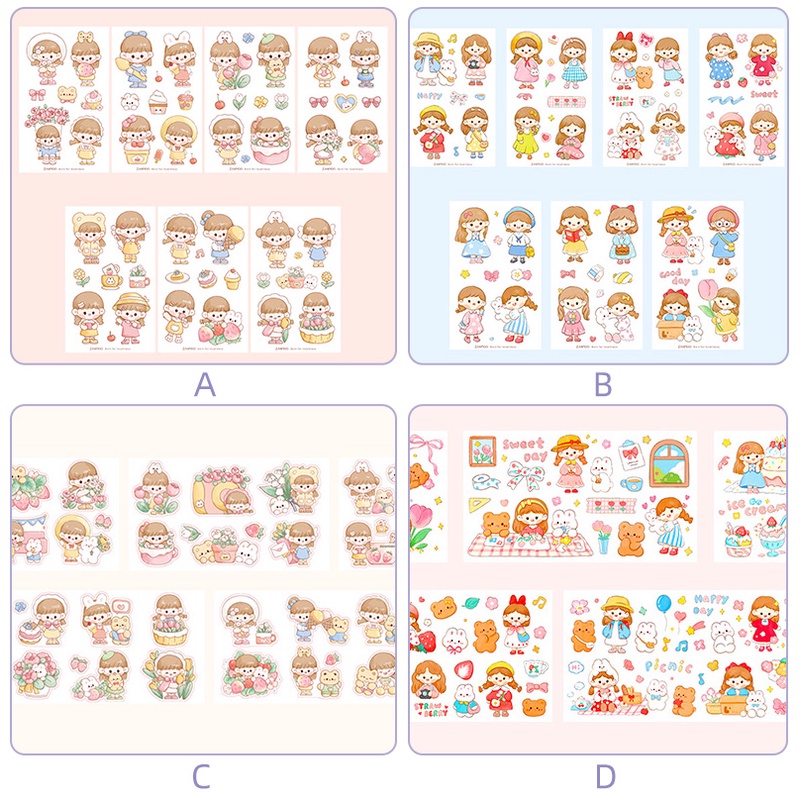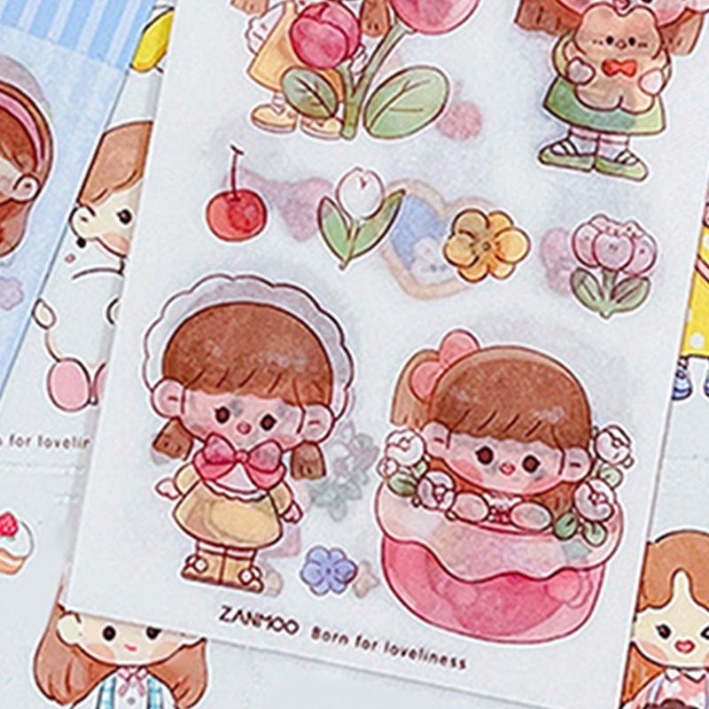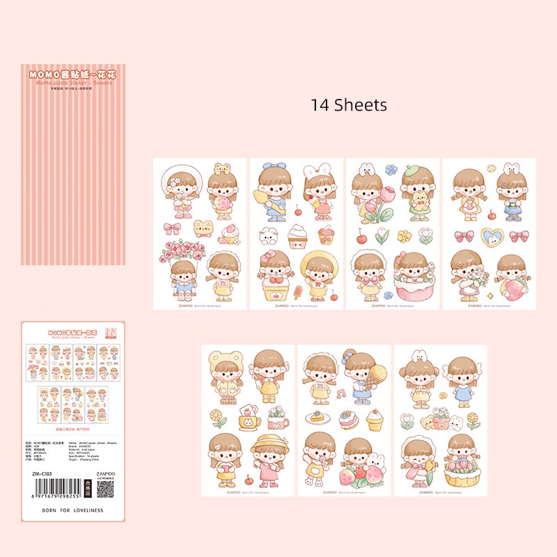 14 Sheets Cute Cartoon Girl Stickers Pack Student Diary Deco DIY Stickers