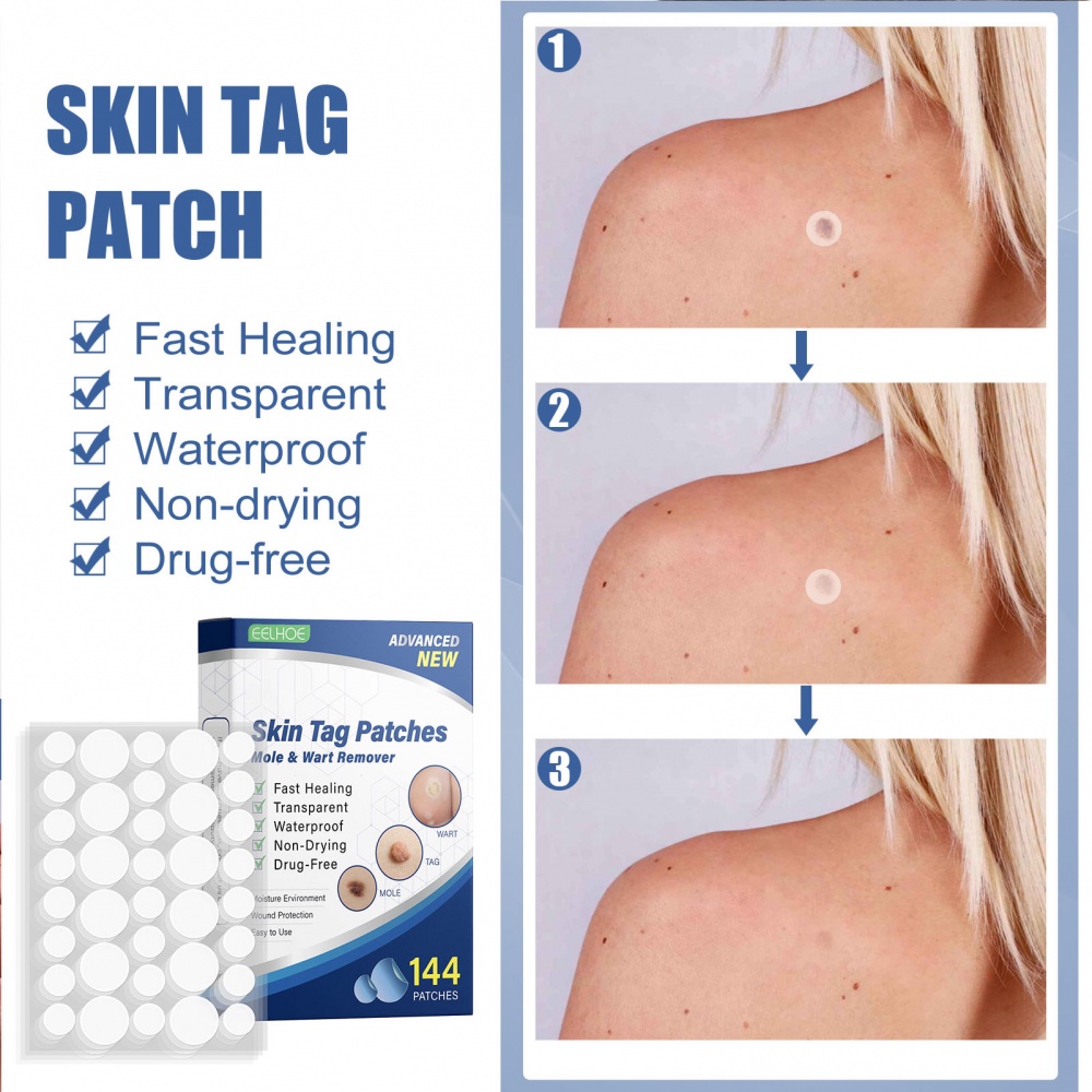 144PCS/Box Warts Remover Patch Safe Painless Skin Tag Remover Patch Fast Acting Remover Warts Moles Natural Gentle Ingredients for All Skin