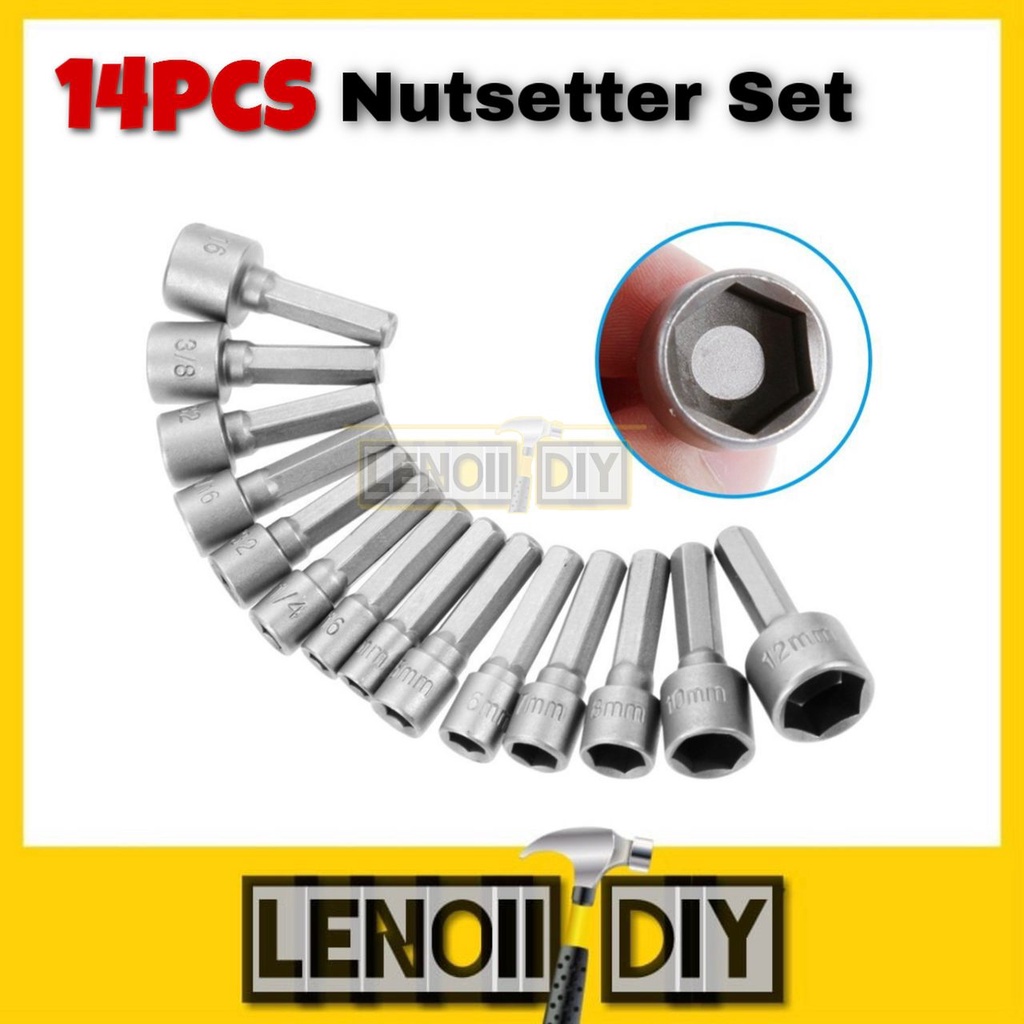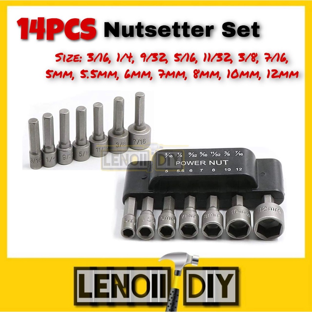 14PCS Nutsetter Set Power Nut Driver Metric & SAE Set Professional Tools Bit Extensions Bits Drivers Mata Drill Skru