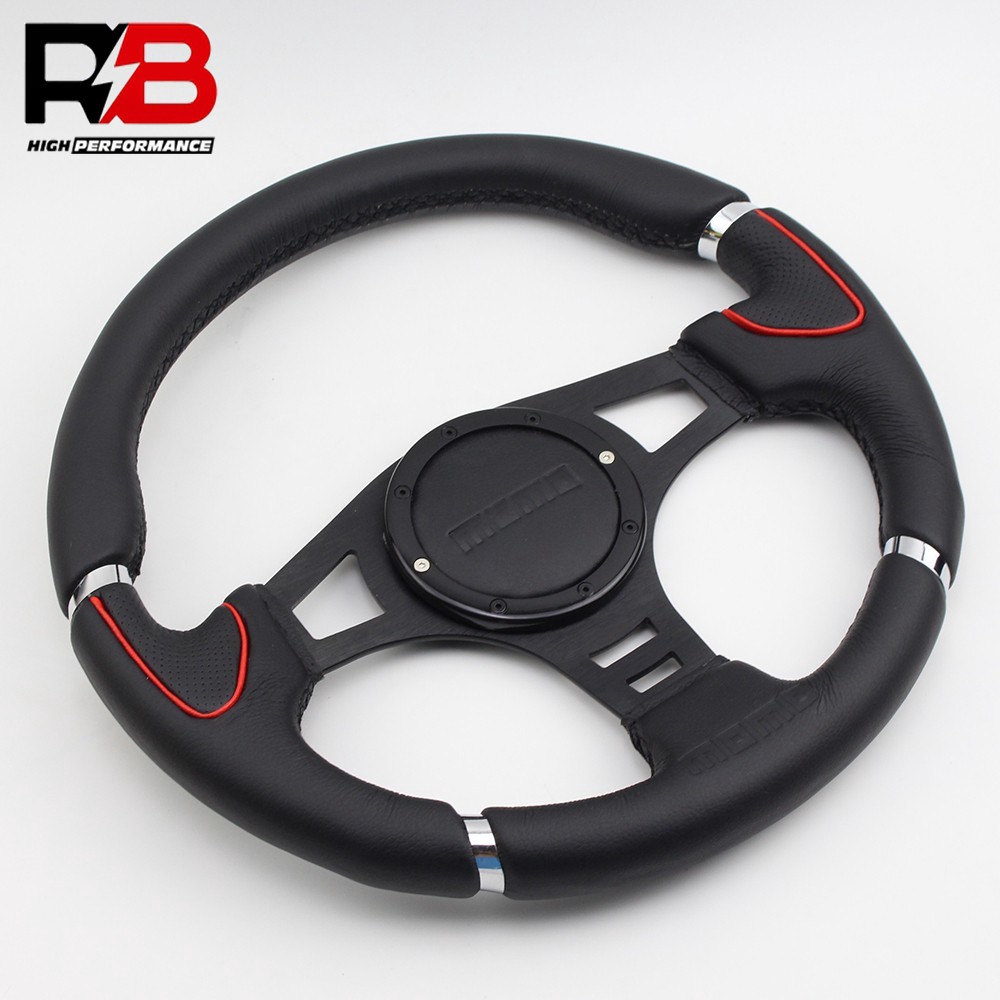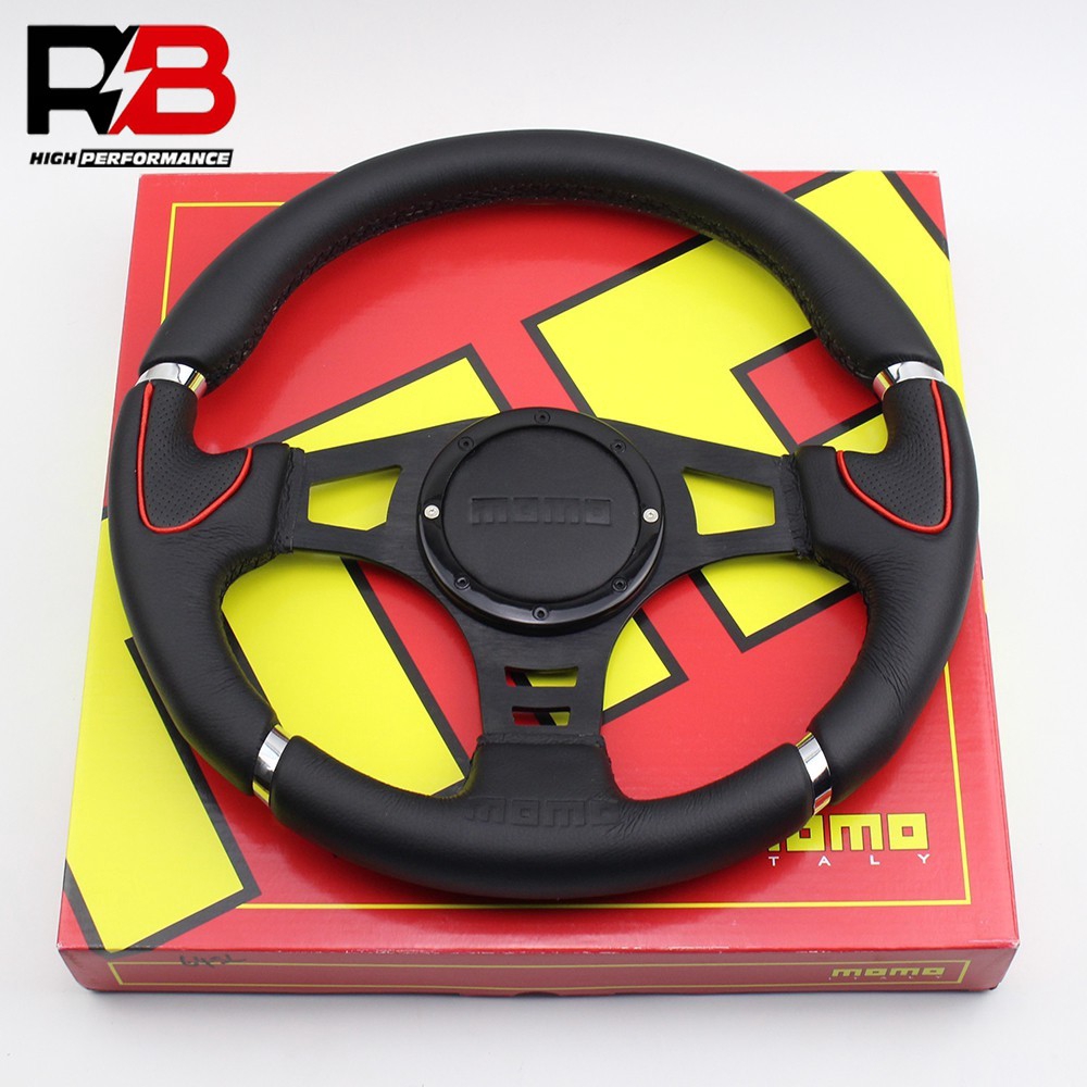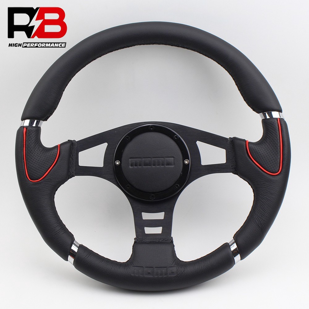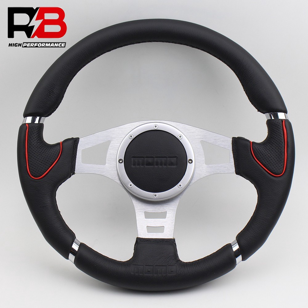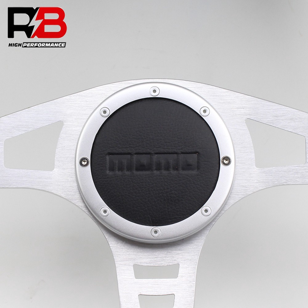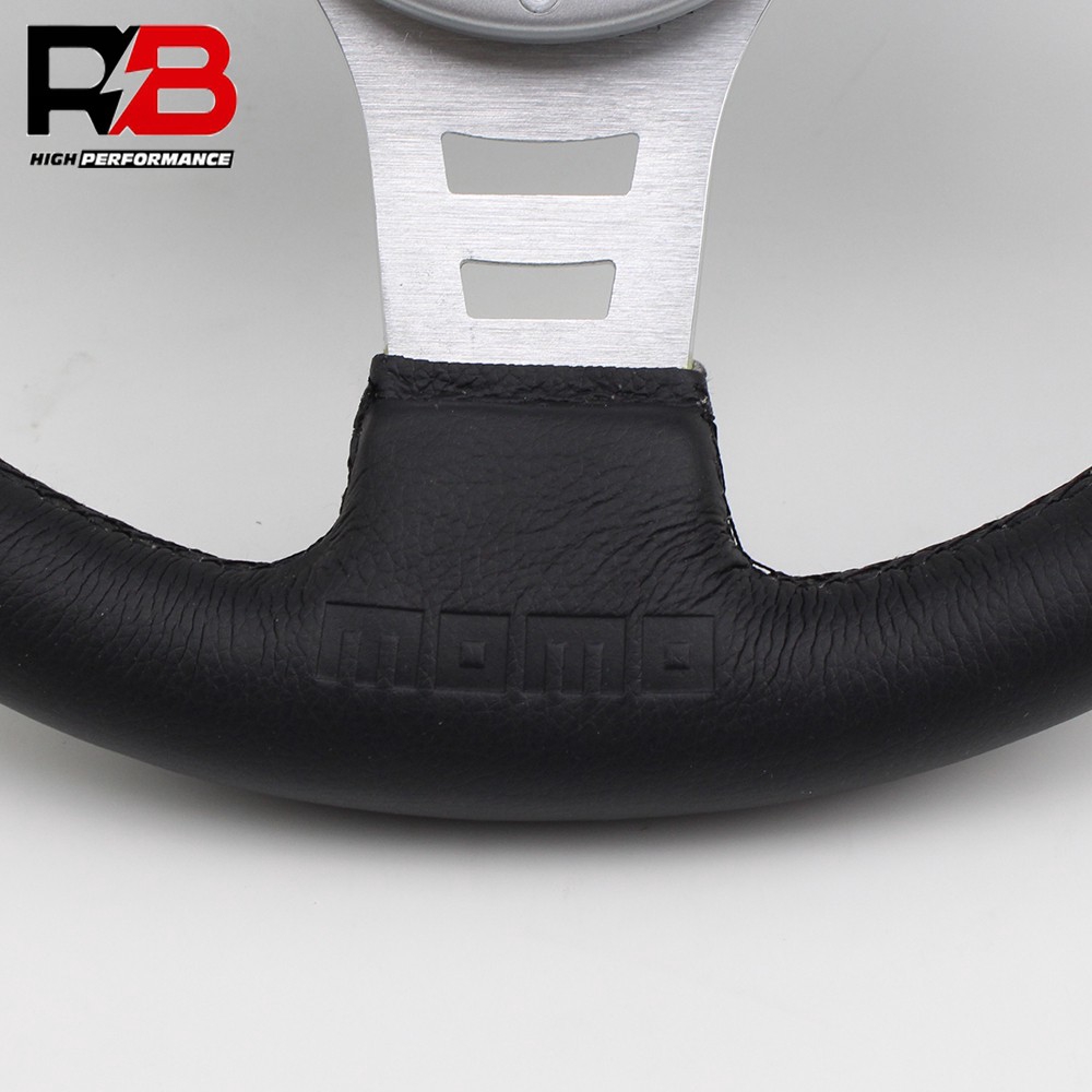 14inch momo logo racing car flat silver sport leather steering wheel